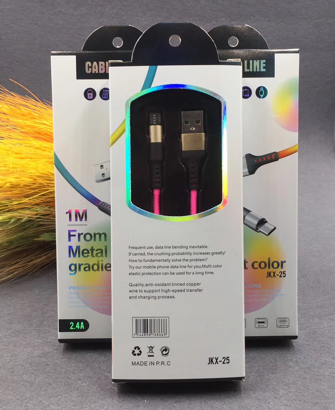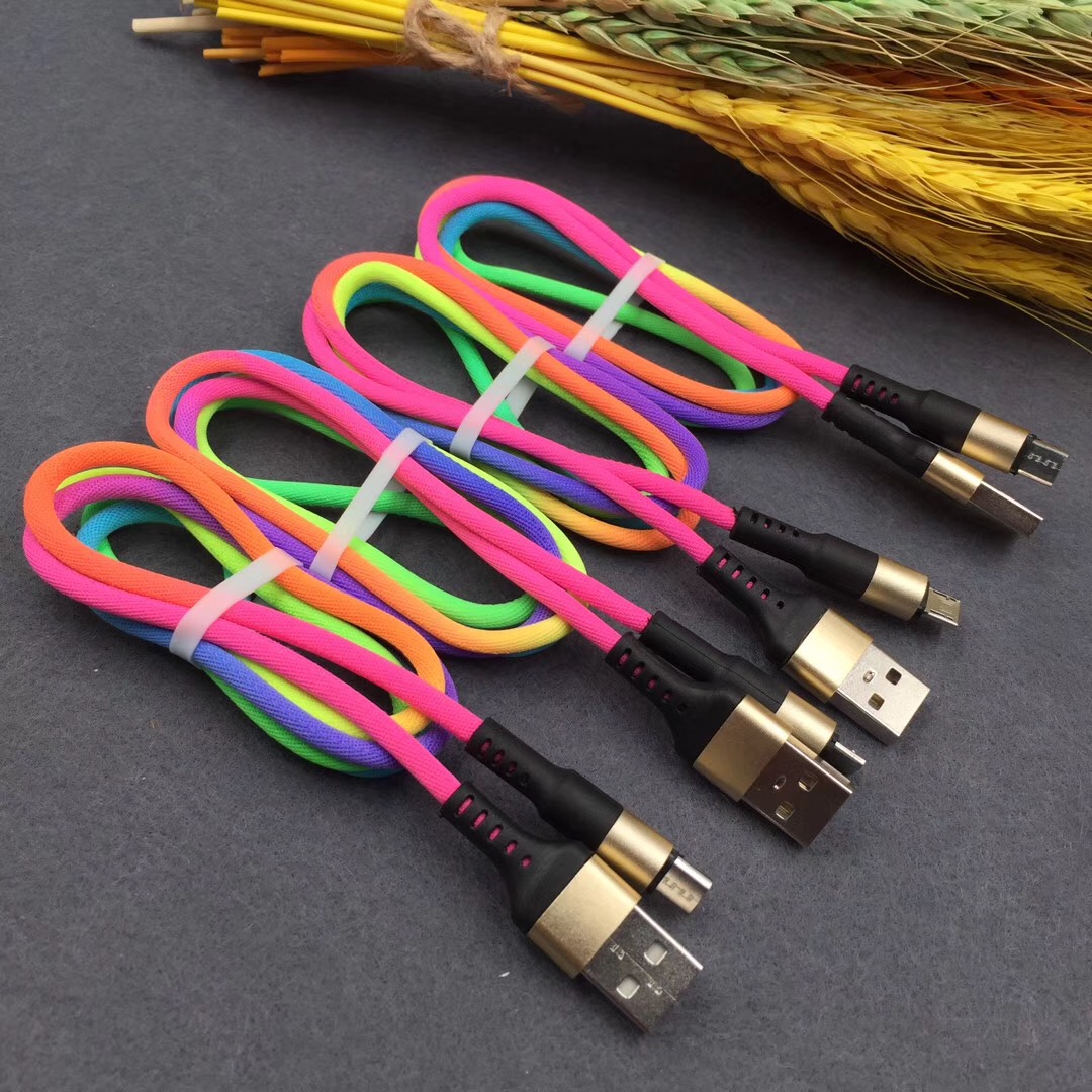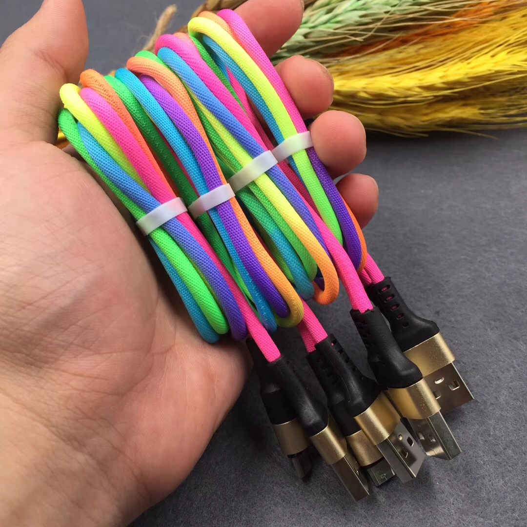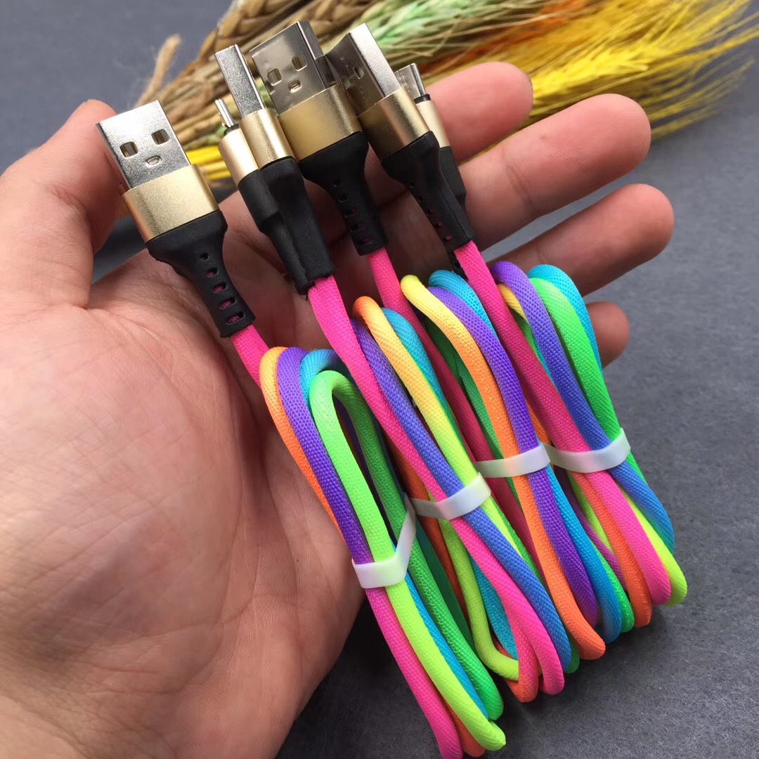 新款炫彩编织数据线适用于苹果安卓type-c手机2A快速充电线