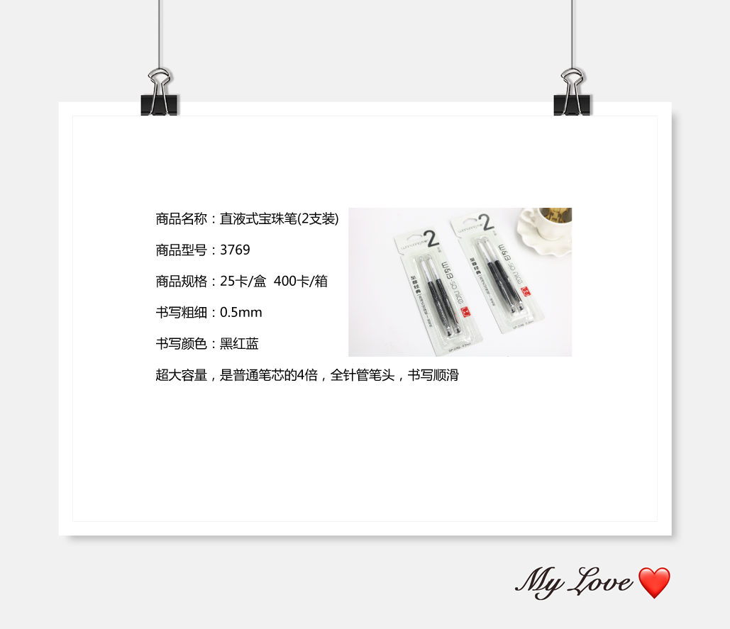 我公司是一家以中性笔为主导的,集科研设计、模具制作、产品注塑、笔芯制造为一体的专业化制笔企业。专业生产高、中档 办公、学生中性笔、中性笔芯、礼品笔、广告笔、促销笔、长尾夹、便利贴。我公司以雄厚的实力、合理的价格、优良的服务与多家企业建立了长期的合作关系。在新的一年继续以实施品牌战略,争创驰名、著名商标,提升企业核心竞争力为主。上海万帮文具有限公司热诚欢迎各界人士前来参观、考察、洽谈业务。国内营销中心:中国义乌国际商贸城H1-21508商位。 真彩中性笔 晨光中性笔 爱好中性笔晨光文具 , 得力deli, 齐心Comix ,真彩-乐美,贝发BEIFA , 白雪文具 ,广博文具 , 爱华 ,树德SHUTER
