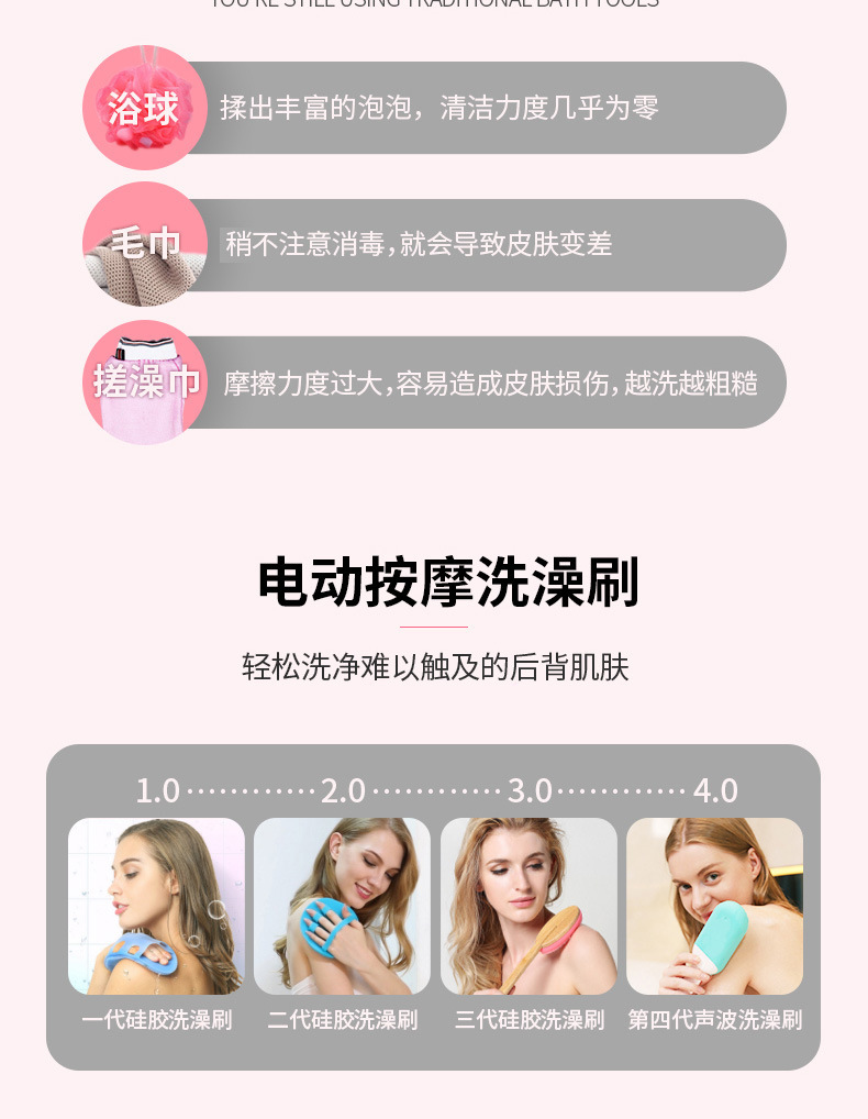 INNERNEED声波震动洗澡刷搓背电动沐浴按摩电动刷子5档硅胶软毛刷 投诉