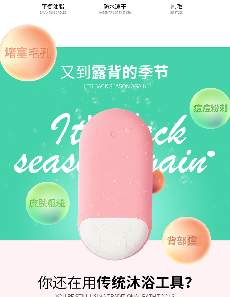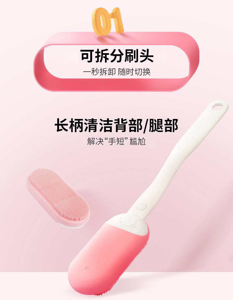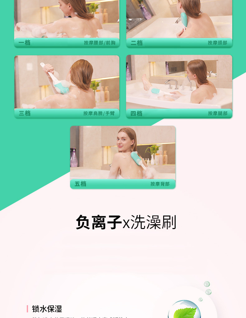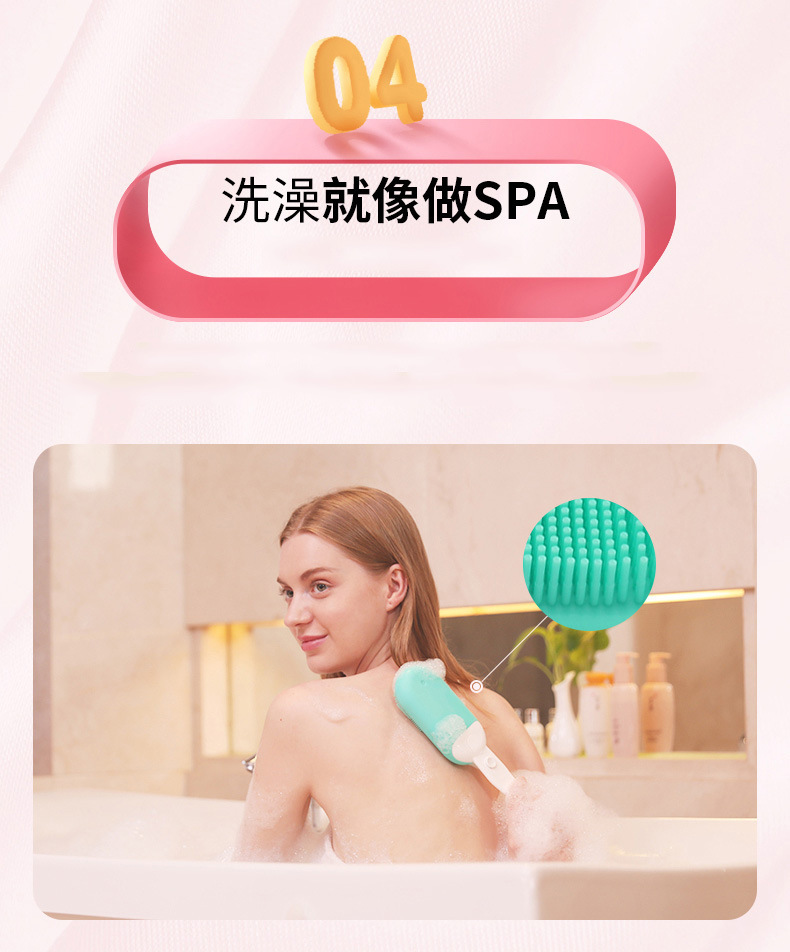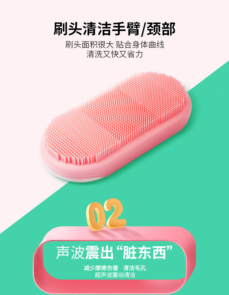 INNERNEED声波震动洗澡刷搓背电动沐浴按摩电动刷子5档硅胶软毛刷