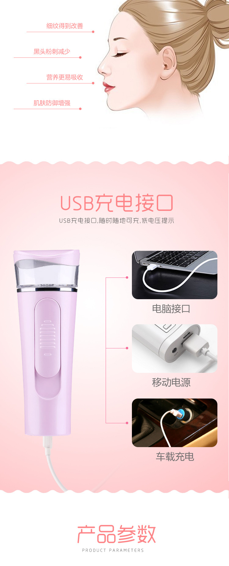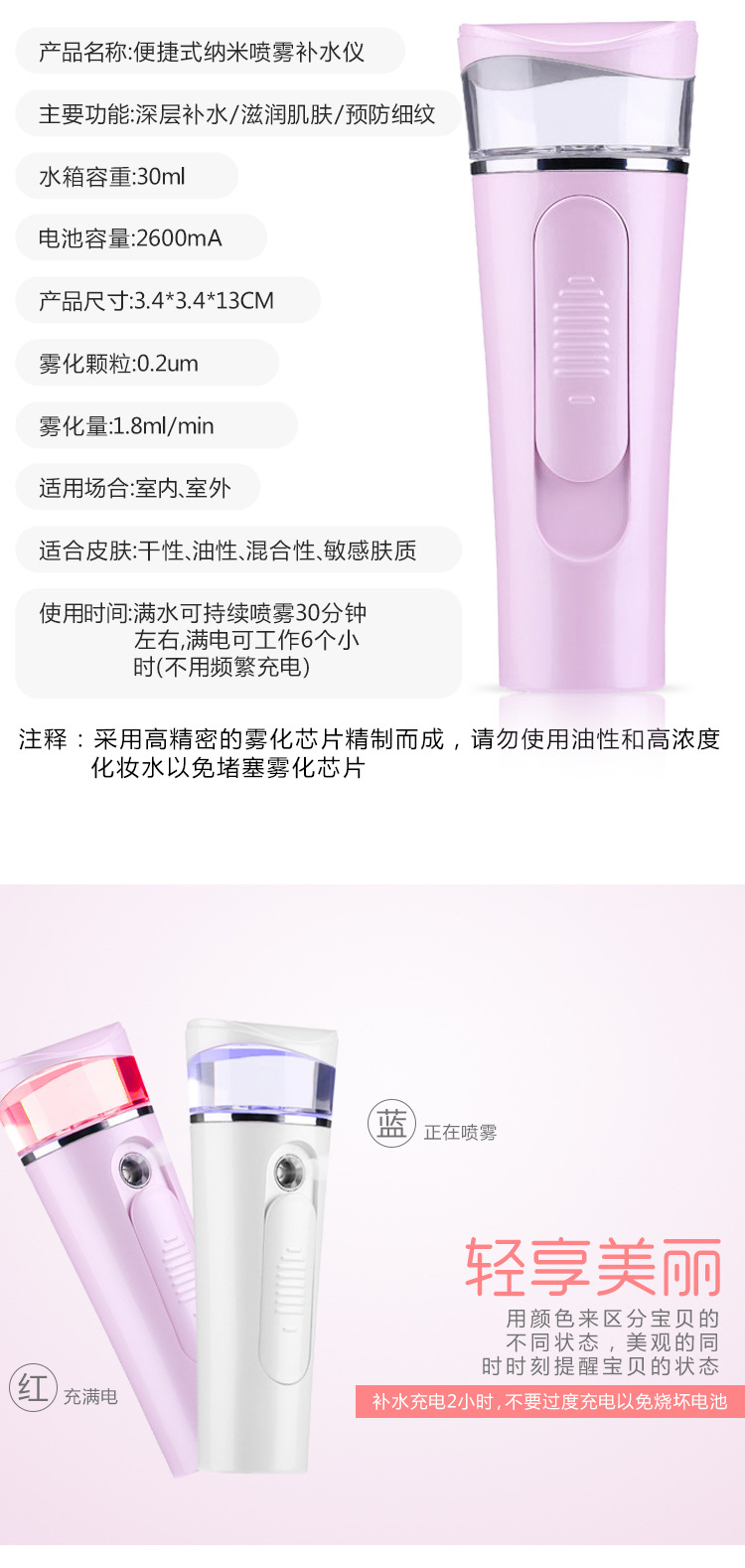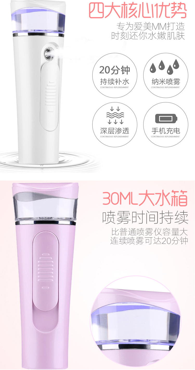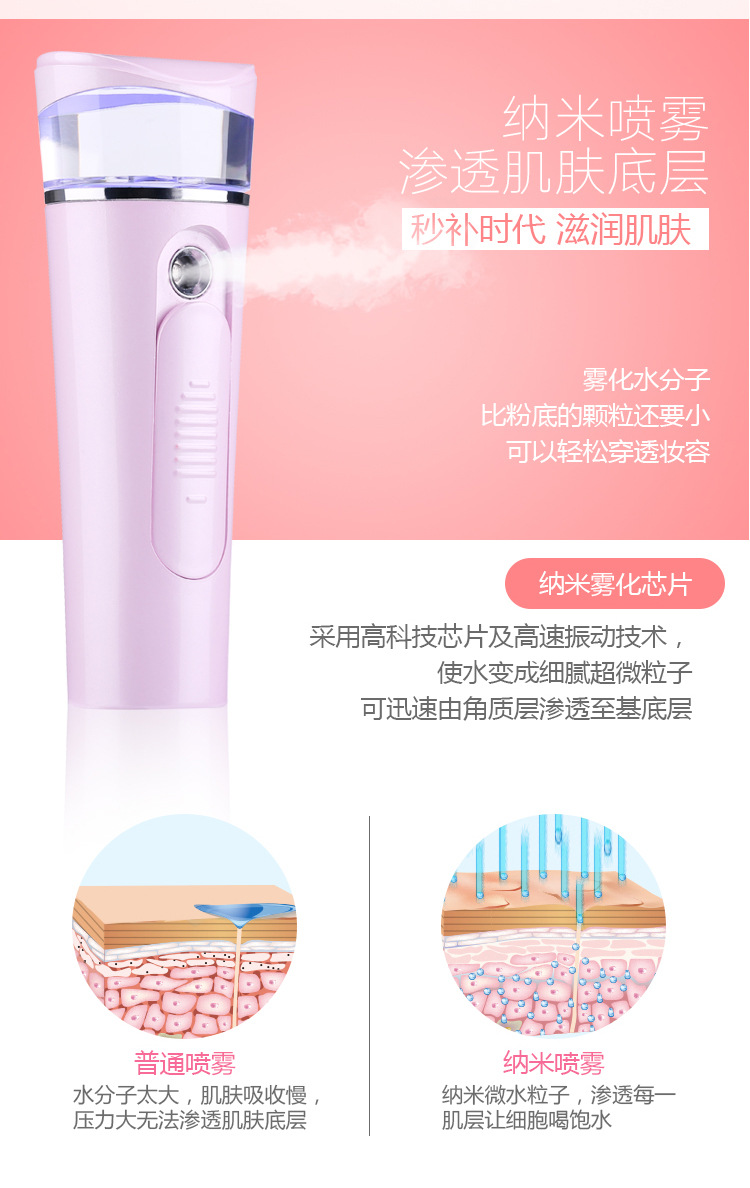 纳米喷雾补水仪充电款补水仪加湿器冷喷仪手持美容喷雾仪蒸脸器