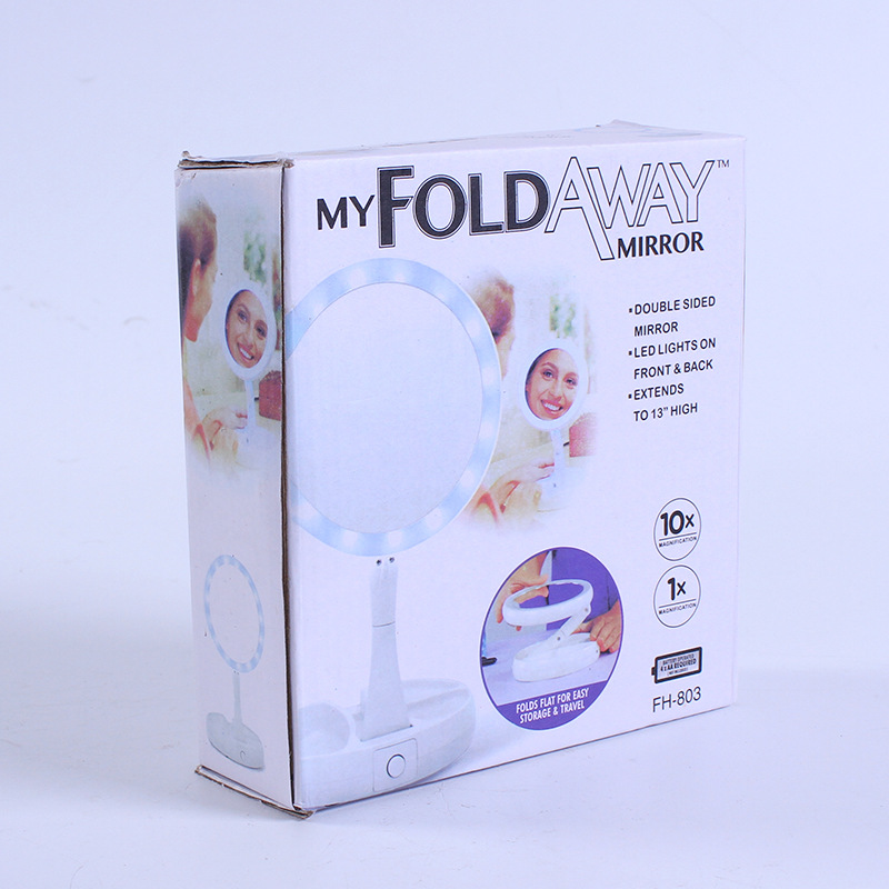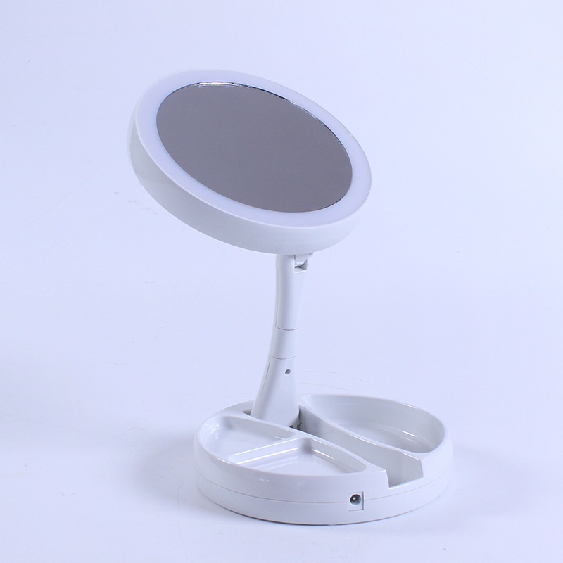 现货代发创意随身LED化妆镜台式带灯光折叠化妆镜立式双面放大