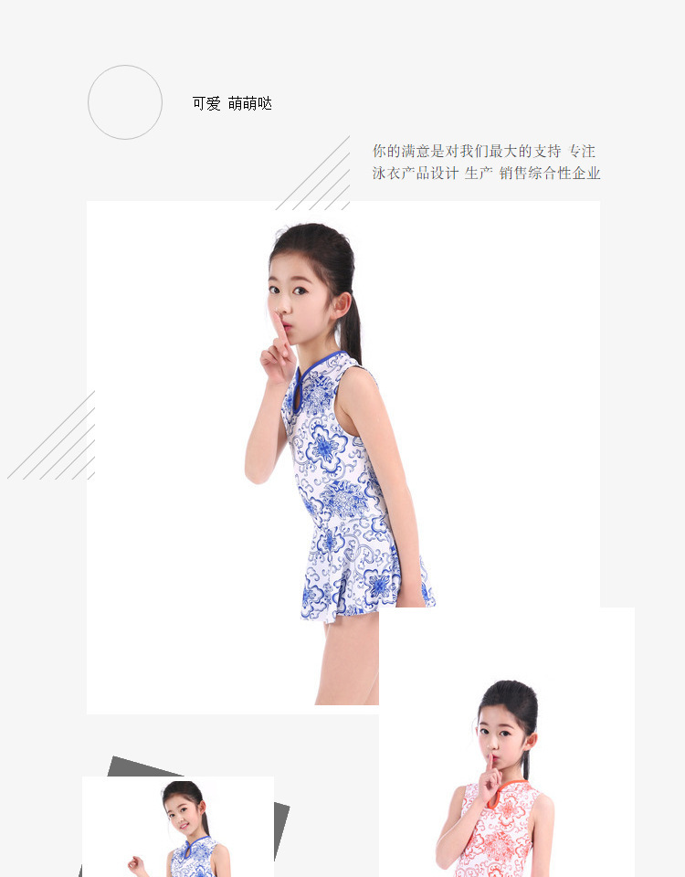 新款儿童中国风旗袍式泳衣