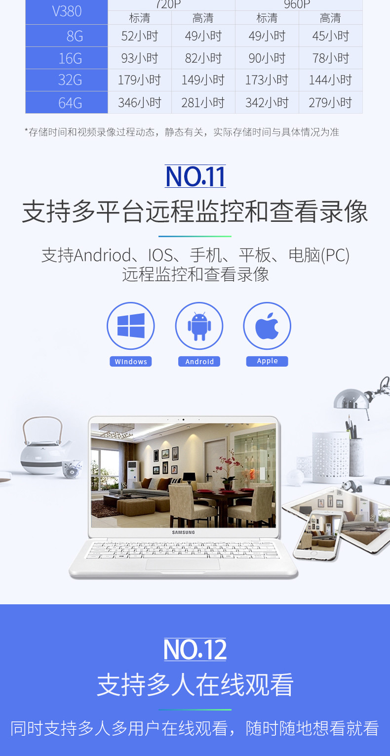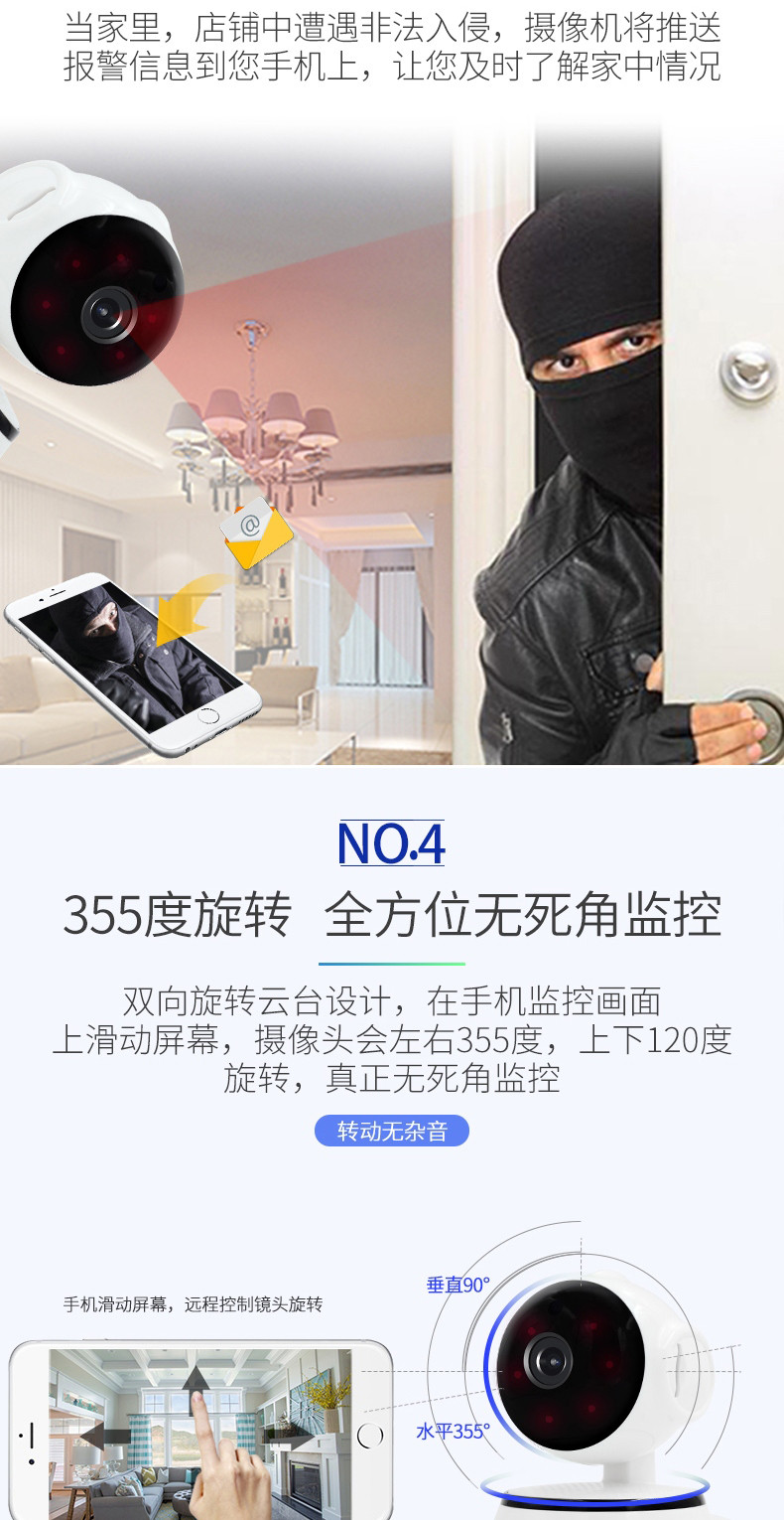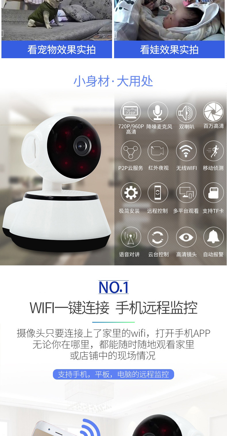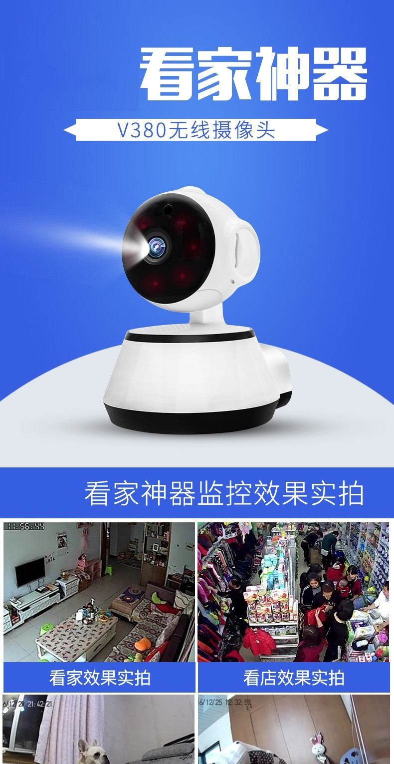 无线摄像头wifi手机远程高清探头套装V380室内监视家用家庭监控器