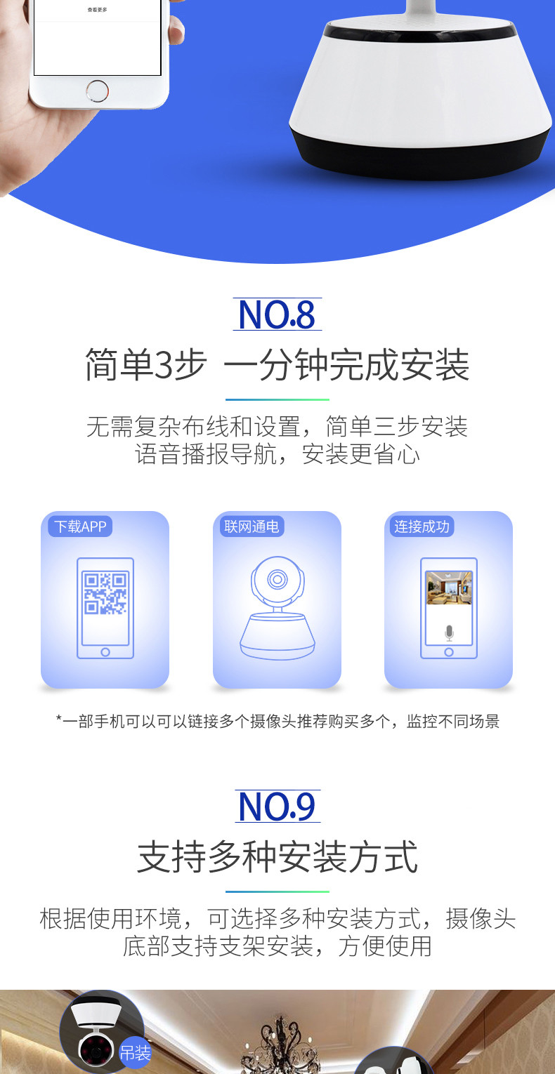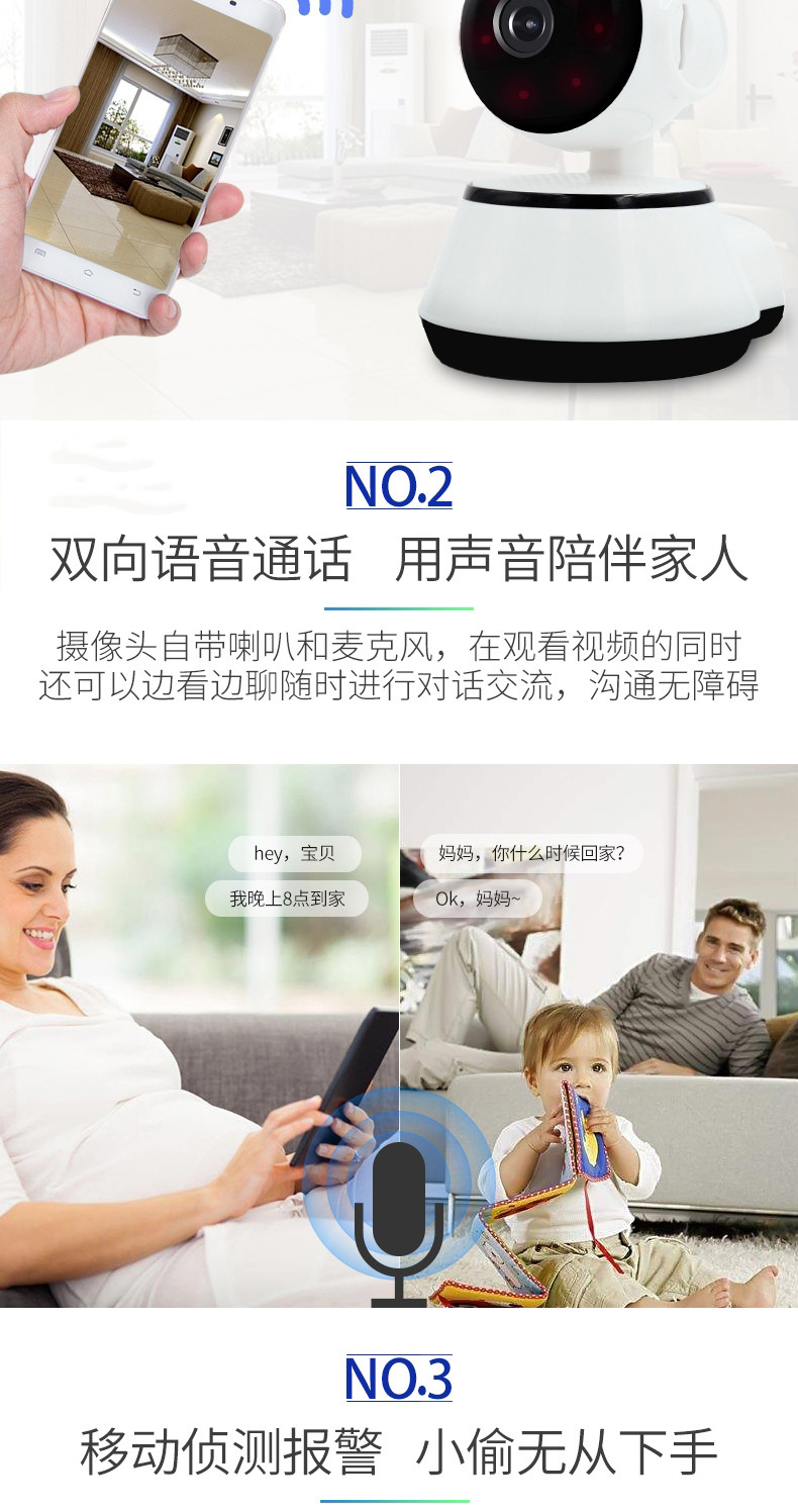 无线摄像头wifi手机远程高清探头套装V380室内监视家用家庭监控器 投诉