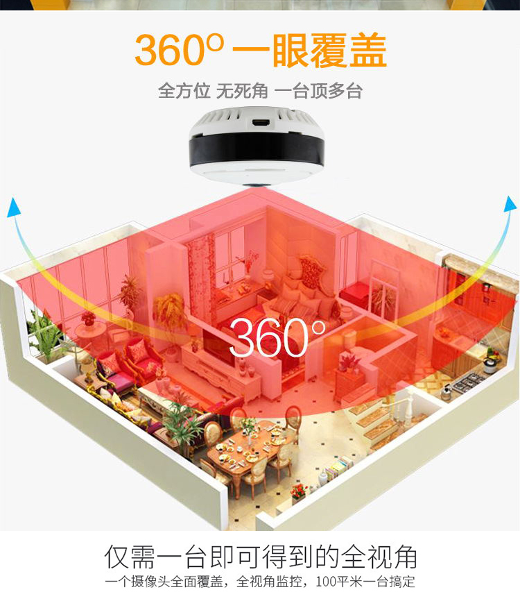 v380无线全景监控摄像头高清家用WIFI1080P手机远程看家宝监控器