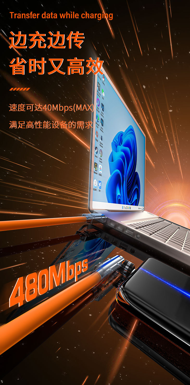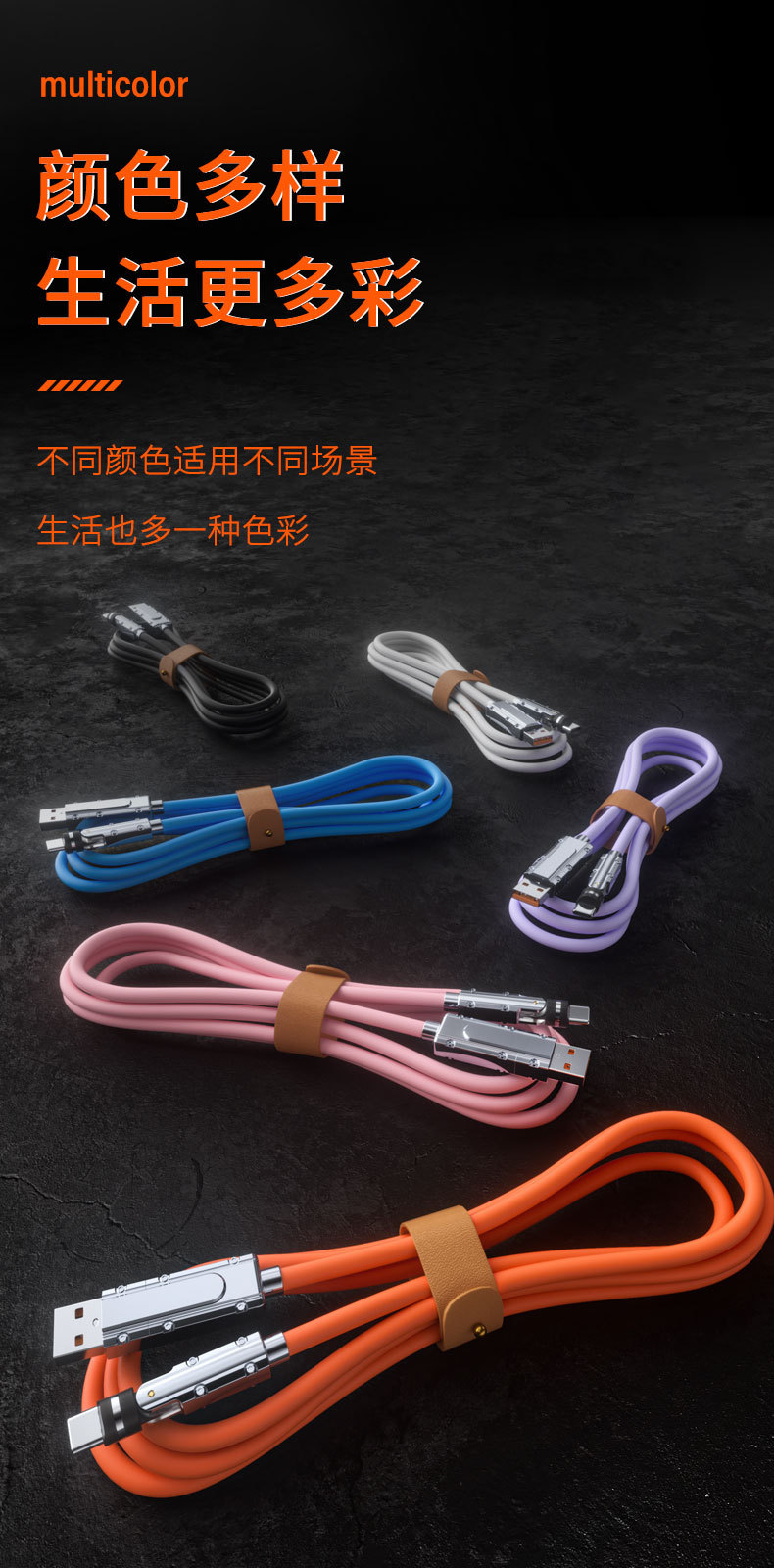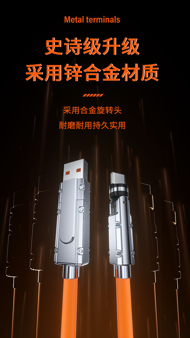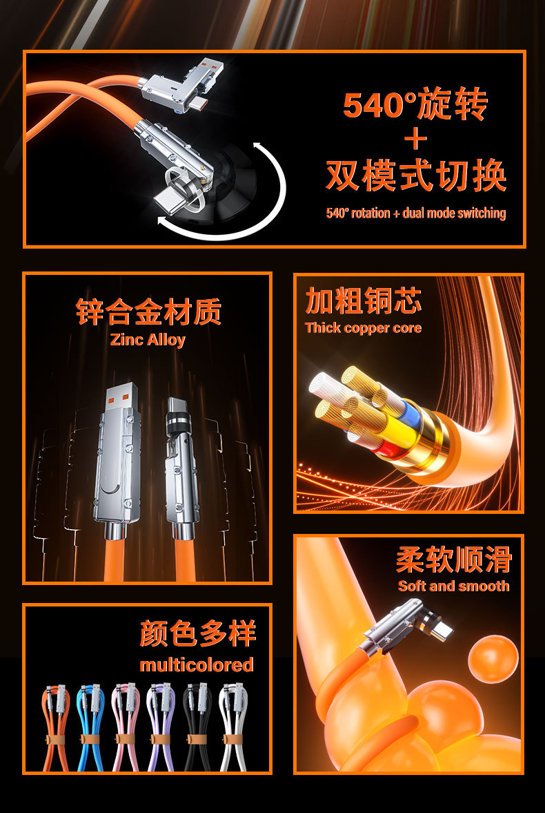 硅胶PD二拖540度旋转快充数据线二合一适用苹果15华为笔记本电脑 投诉