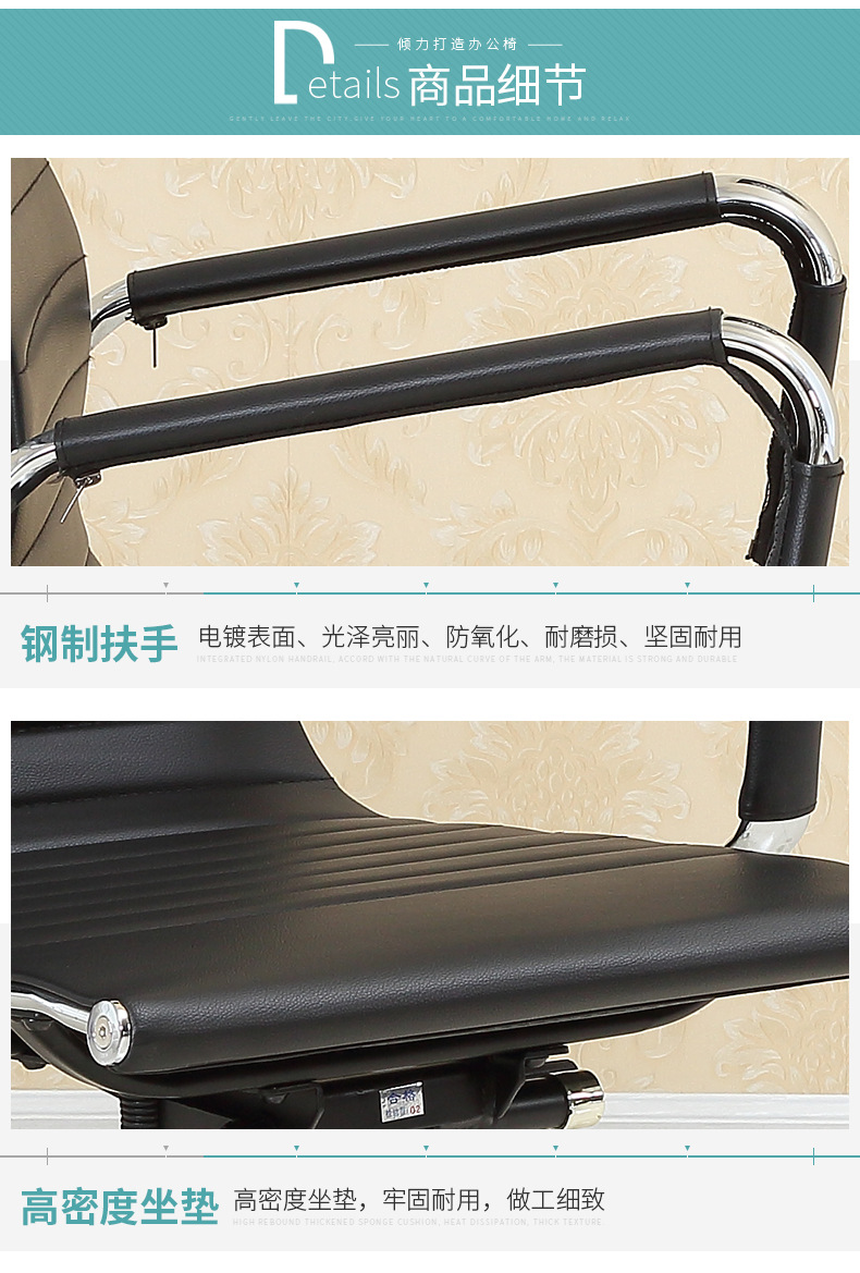 电镀钢框架办公椅子简约电脑椅现代pu皮耐实职员工布椅子