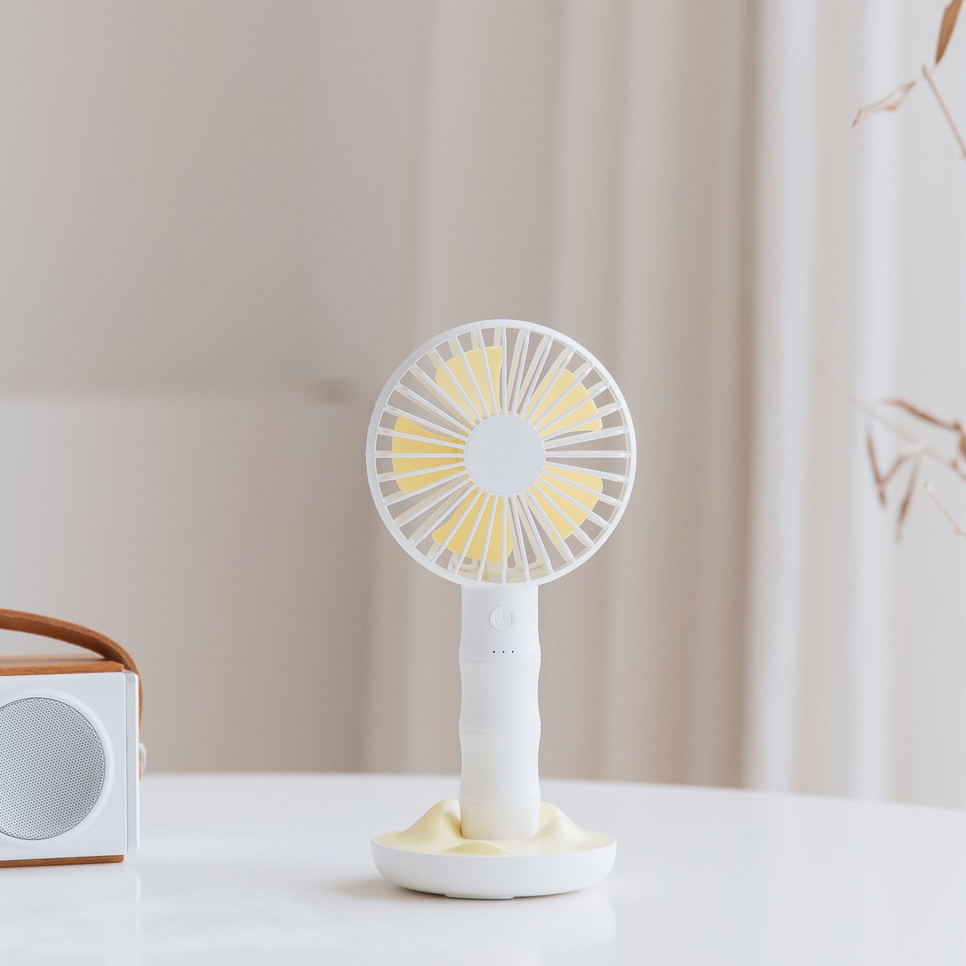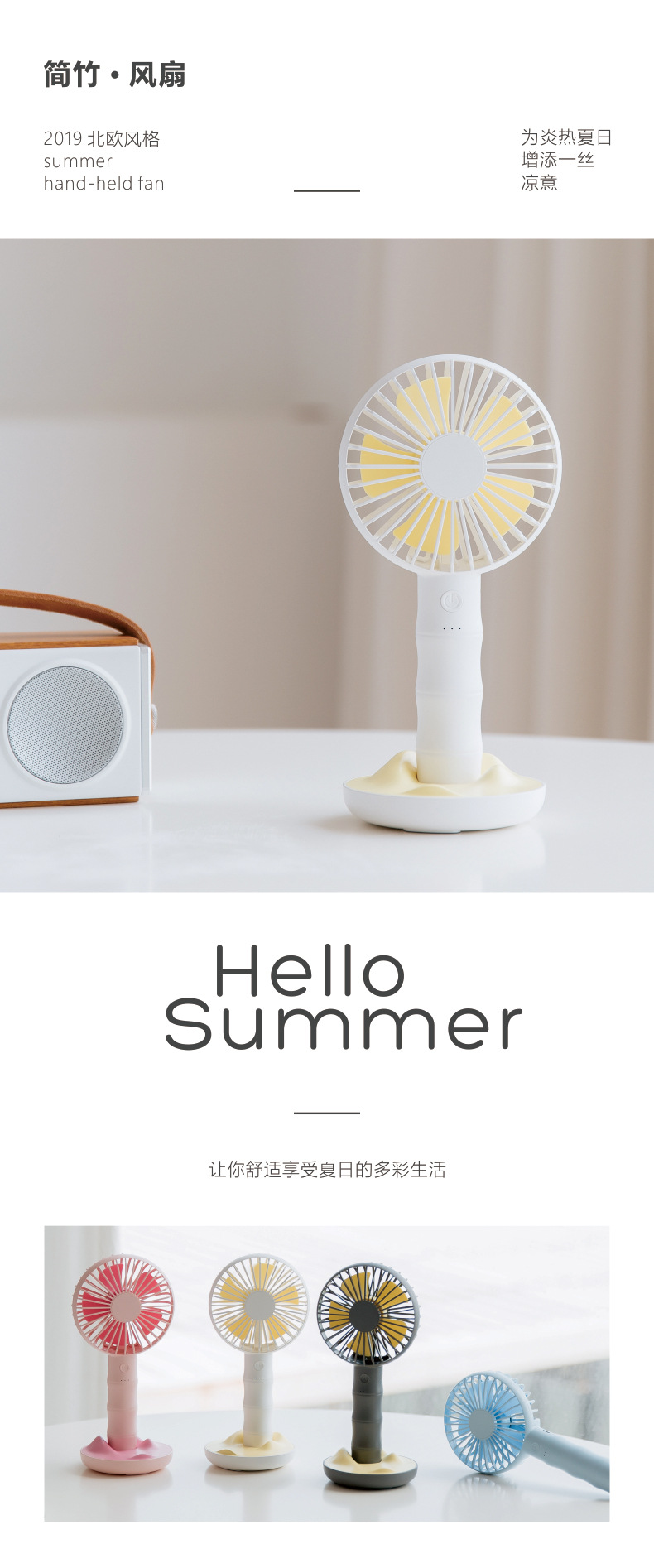 创意简竹风扇USB可充电大风力小风扇迷你桌面便携手持电风扇
