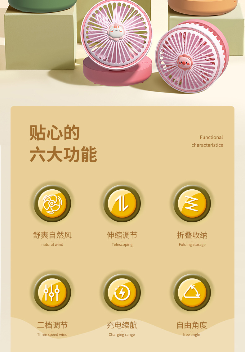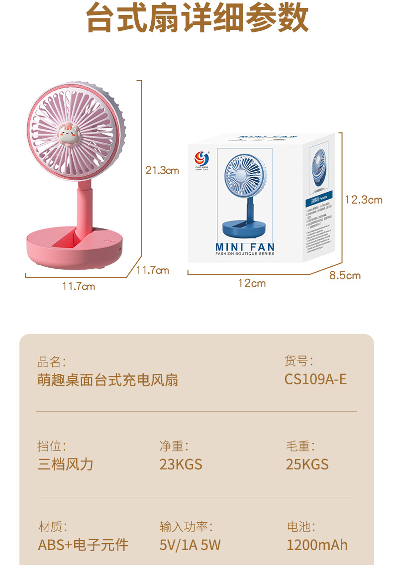 卡通台式小风扇 USB充电学生便携式家用办公室大风力桌面小型风扇 投诉