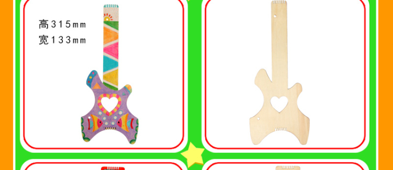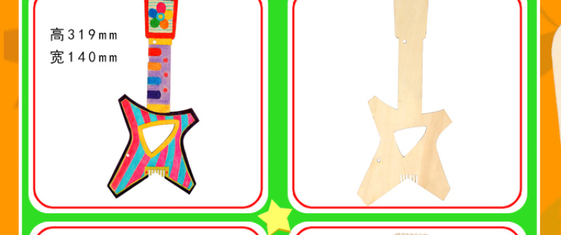 适用范围:儿童手工绘画制作,美术课手工材料包,儿童益智玩具,可以结合水彩笔,丙烯颜料,亮片,钻石等进行制作装饰,制作过程中可以锻炼小朋友的绘画能力及音乐天赋。