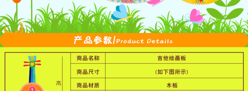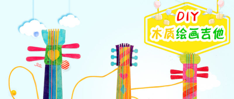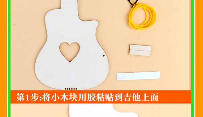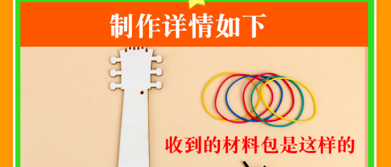 产品配件:木质吉他一个,彩色橡皮筋多条,挂绳一条,双面胶一张
