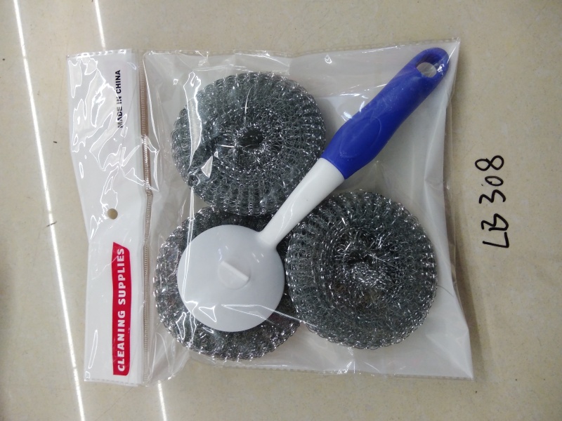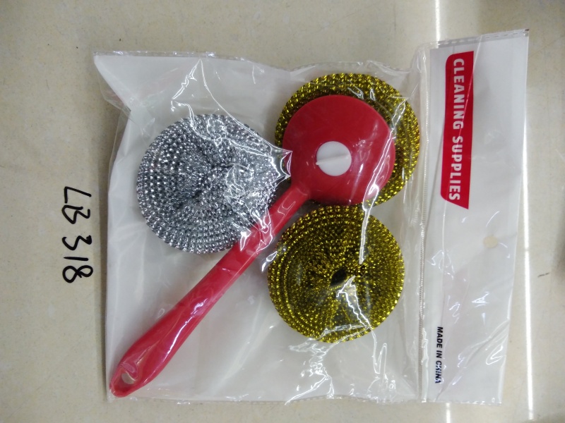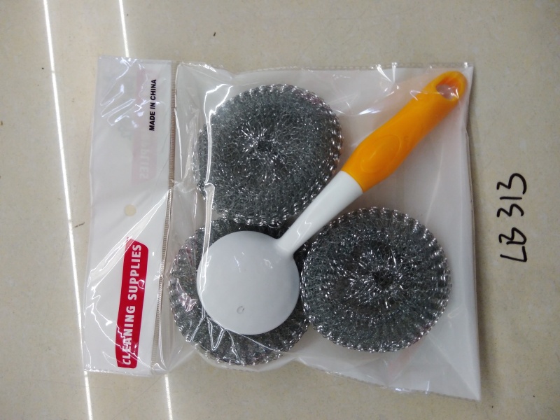 新款厨房清洁刷套装钢丝球锅刷YH铁丝球手柄刷套装 投诉