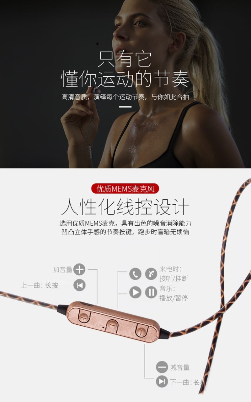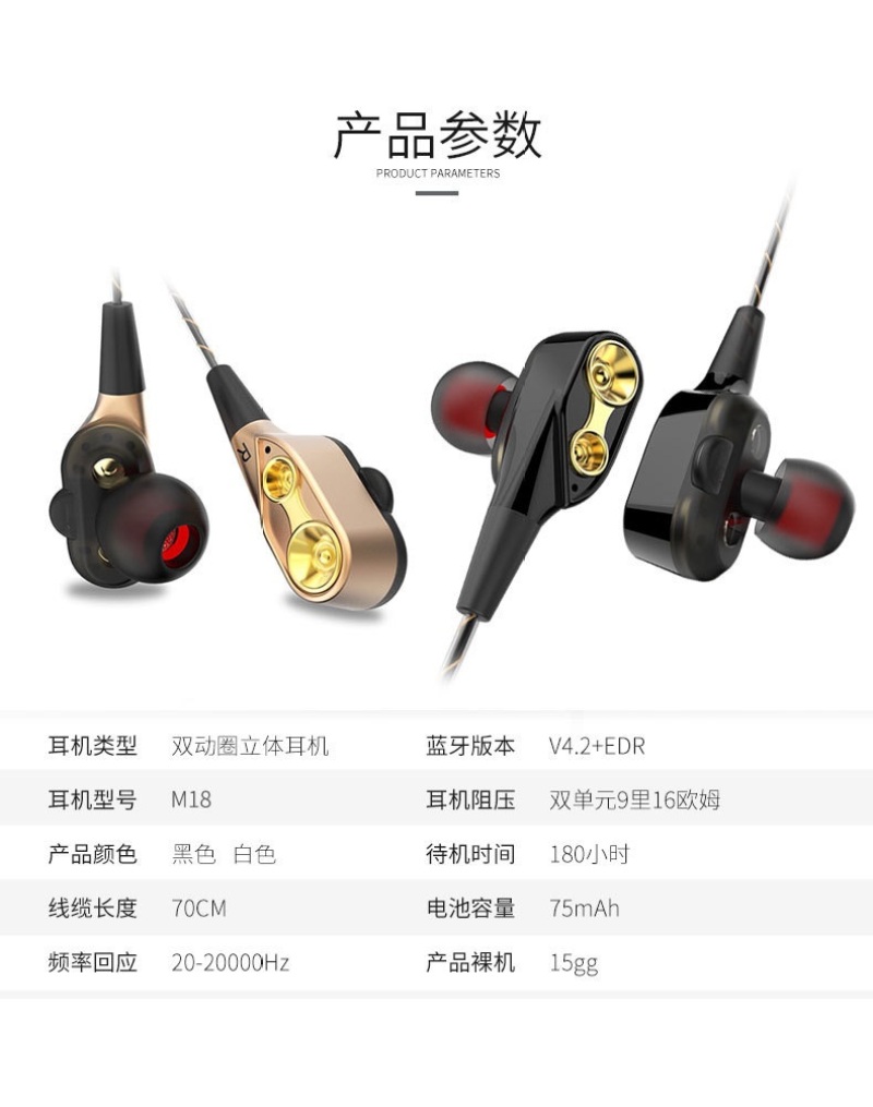1.立体声蓝牙耳机,支持一拖二,重低音效果,双动圈立体