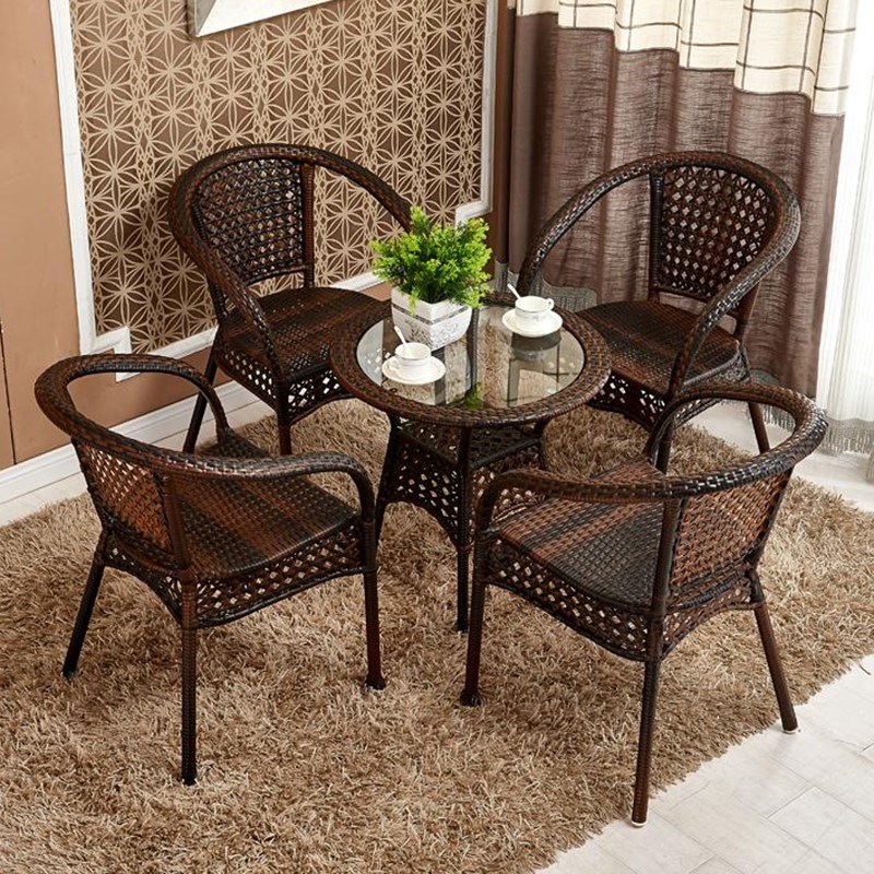 阳台复古藤编休闲桌椅组合白色约藤椅茶几四件套客厅靠背椅