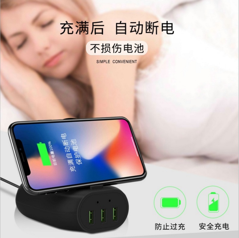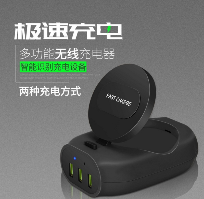 通用型手机无线充电器 3口USB多功能10W 7.5W 5W Qi无线快充电器
