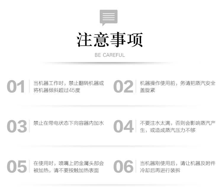 加热时间:约5分钟 蒸汽可用时间:约10分钟 |