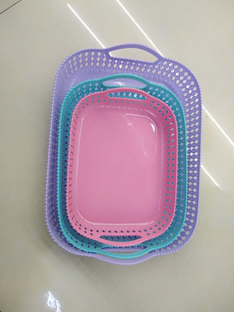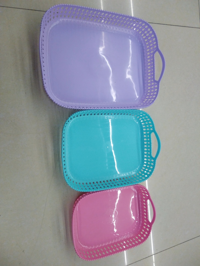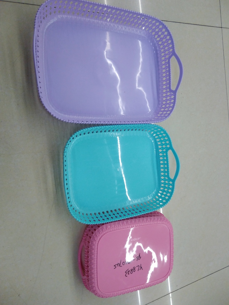 新款塑料盘子YL竹纹果篮托盘塑料水勺漏网 投诉