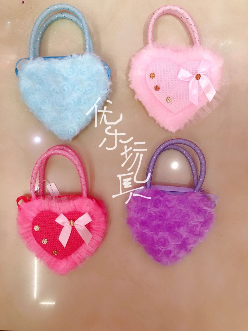 心形毛毛手提挎包 百褶纱心形贴片 可爱挎包