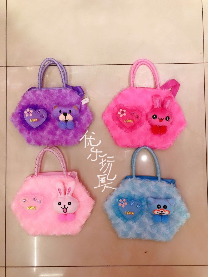 儿童毛毛立体方形粘动物头手提挎包
