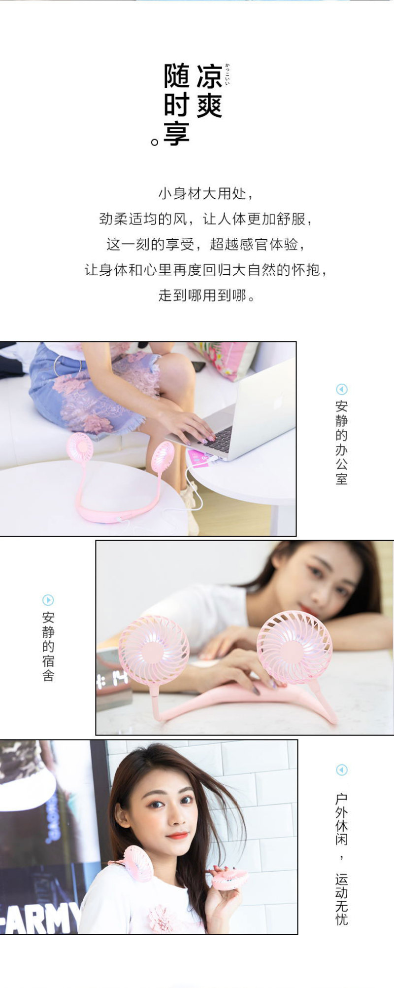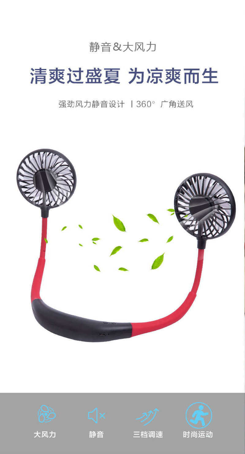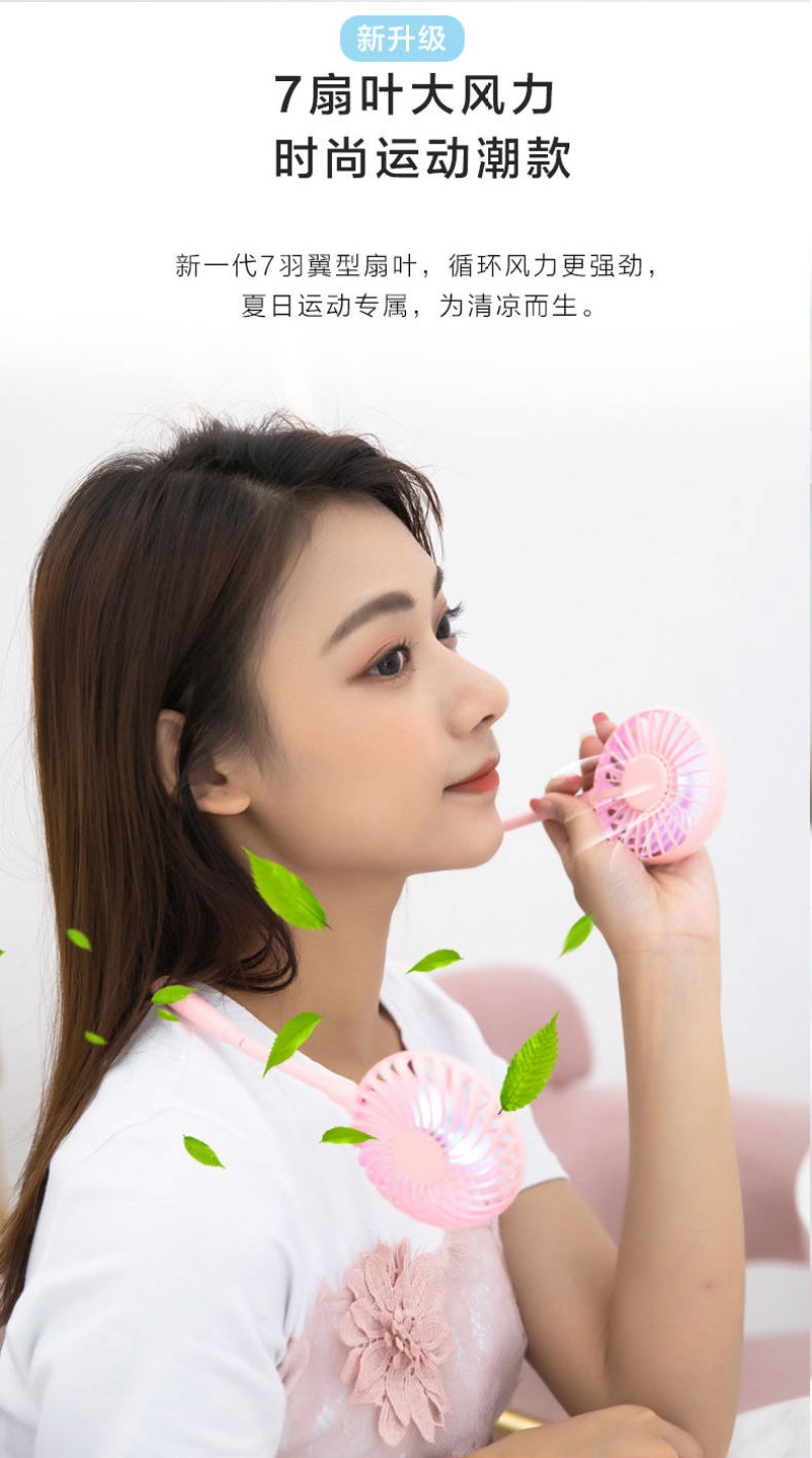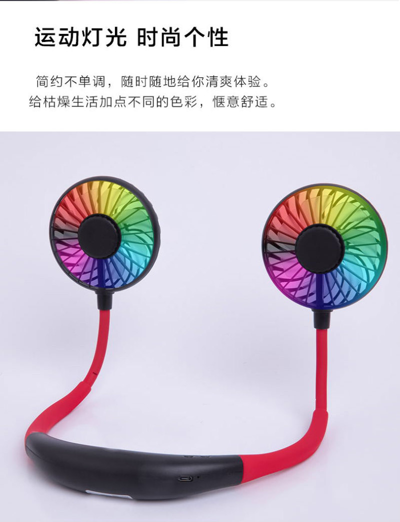 挂脖风扇 LED风扇 七彩灯风扇 便携挂脖式风扇 懒人运动香薰风扇