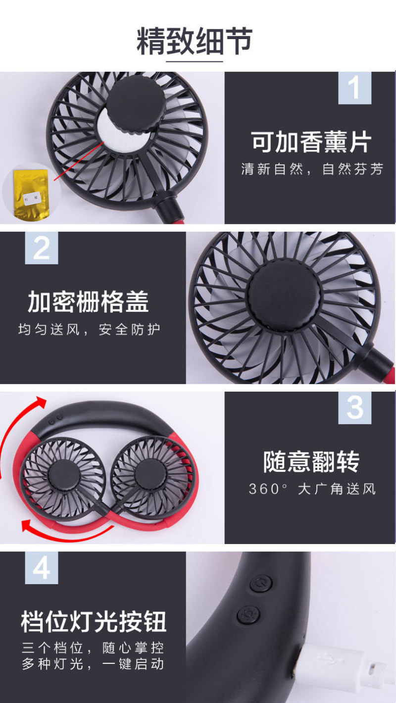挂脖风扇 LED风扇 七彩灯风扇 便携挂脖式风扇 懒人运动香薰风扇 投诉