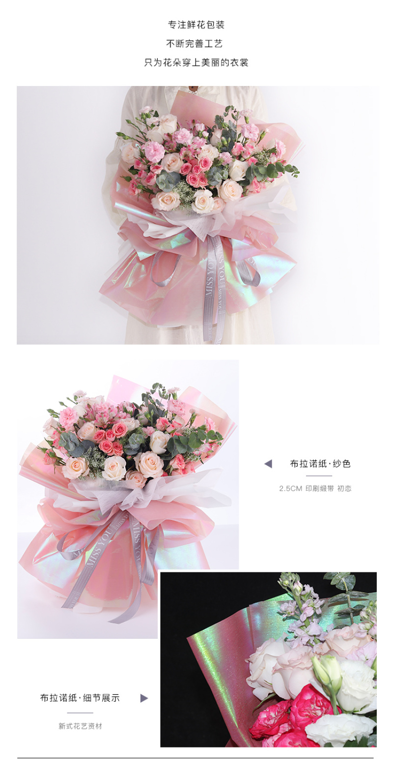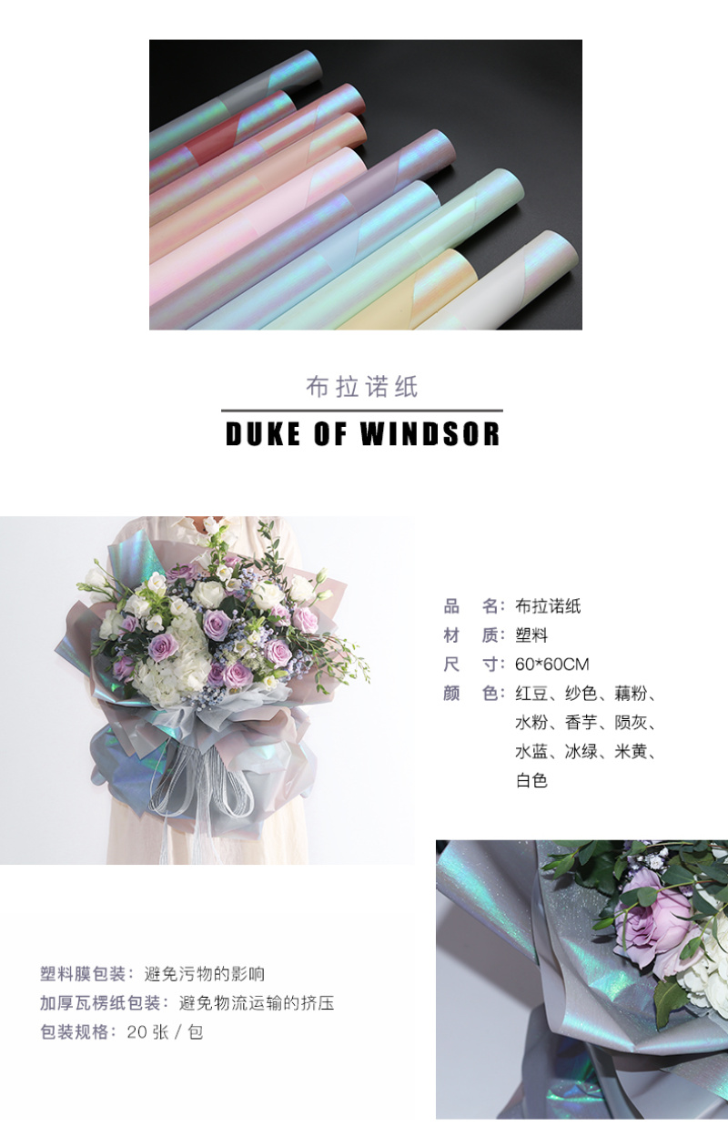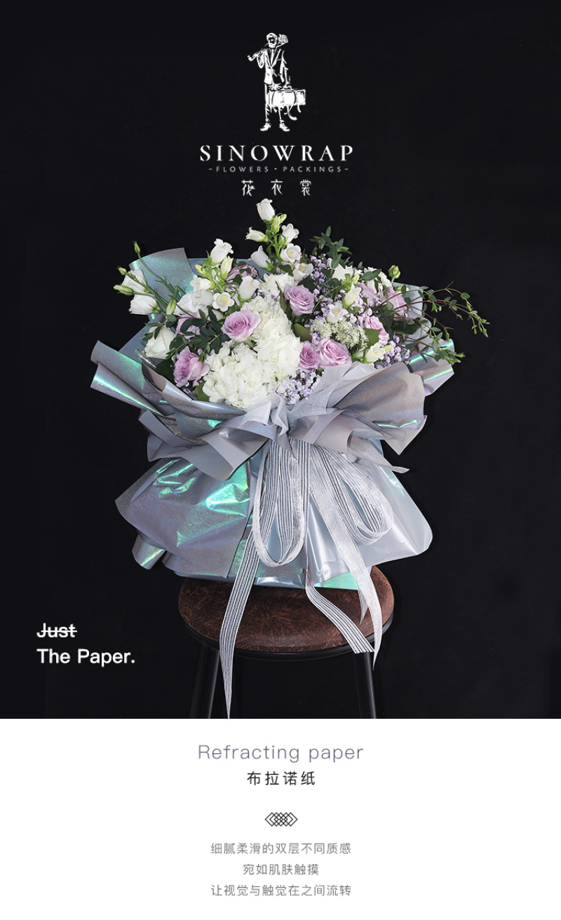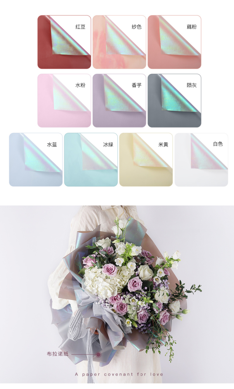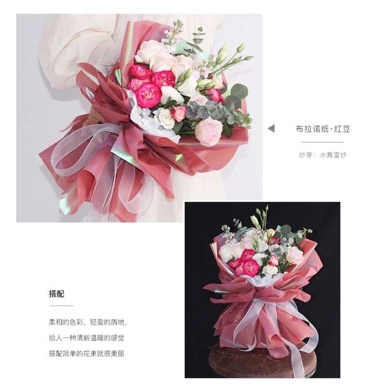 花衣裳新品布拉诺纸鲜花玫瑰花包装花艺纸炫彩色纸七彩光包装纸