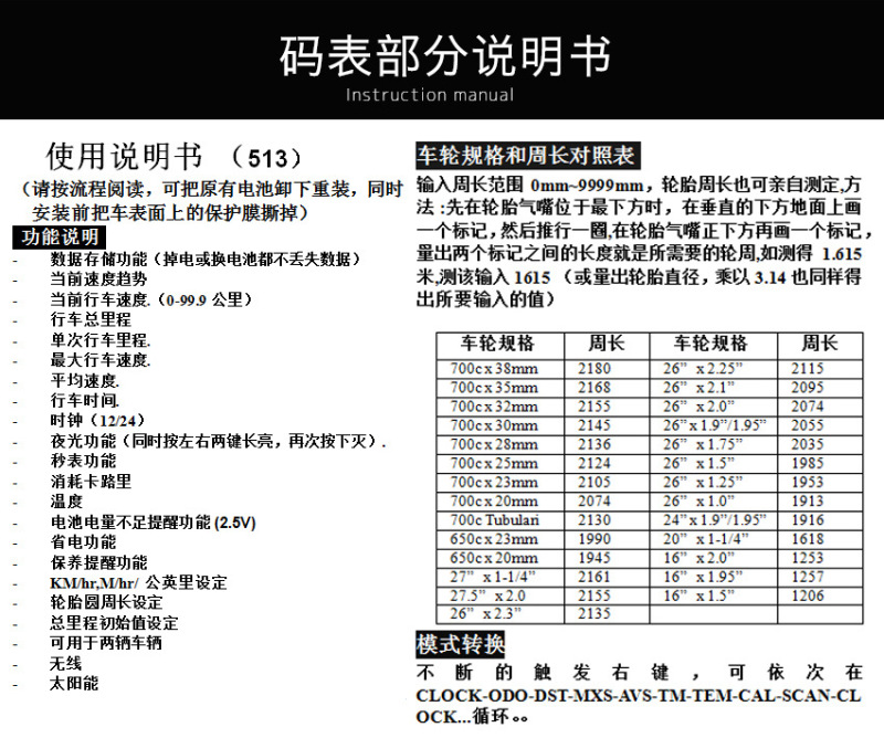 所售码表有中文和英文两个版本,下单时请备注中文或英文。