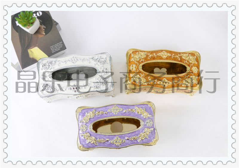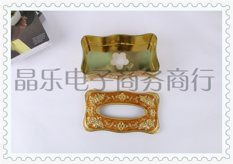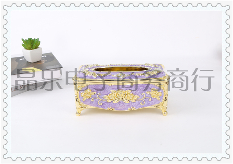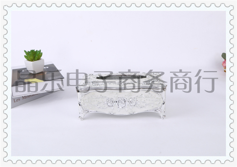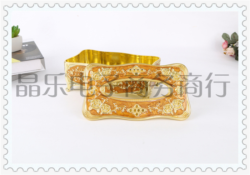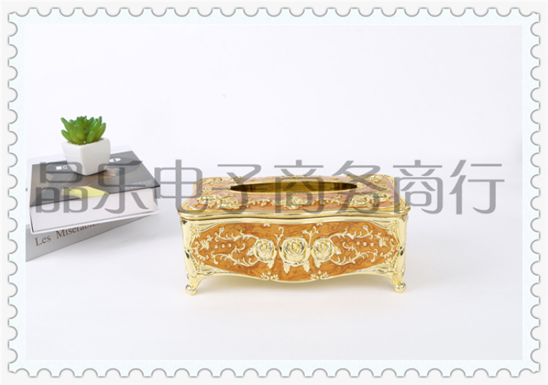 商品名称:电镀玫瑰印花工艺居家客厅家用创意抽纸纸巾盒 多功能茶几收纳盒