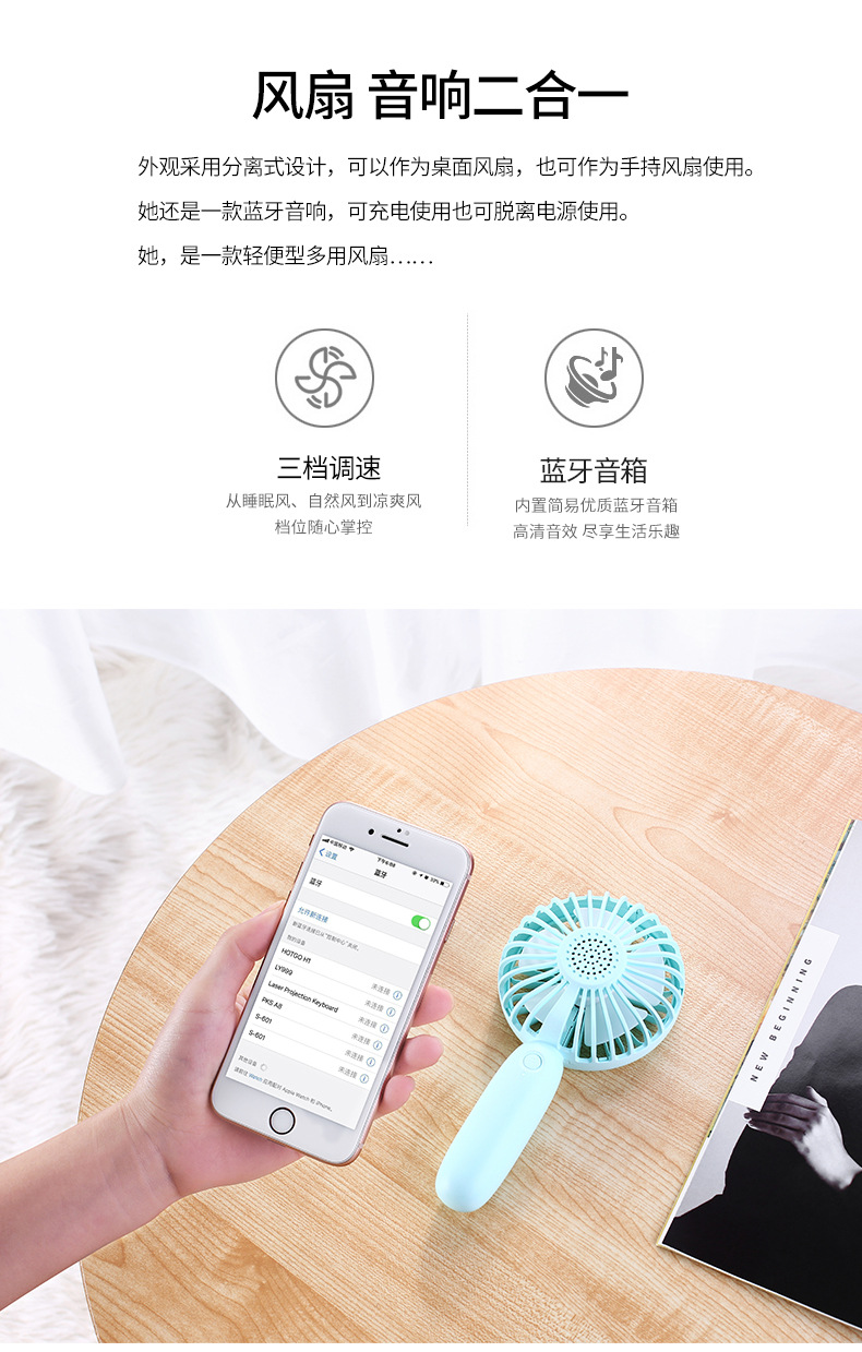 产品功能 手持风扇/桌面风扇/无线蓝牙音箱