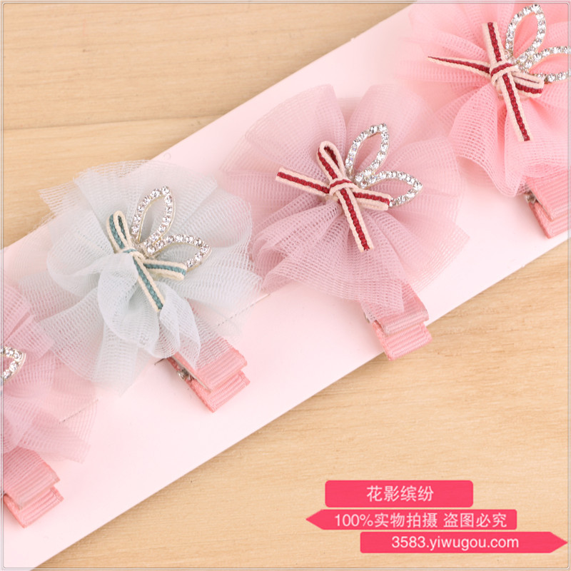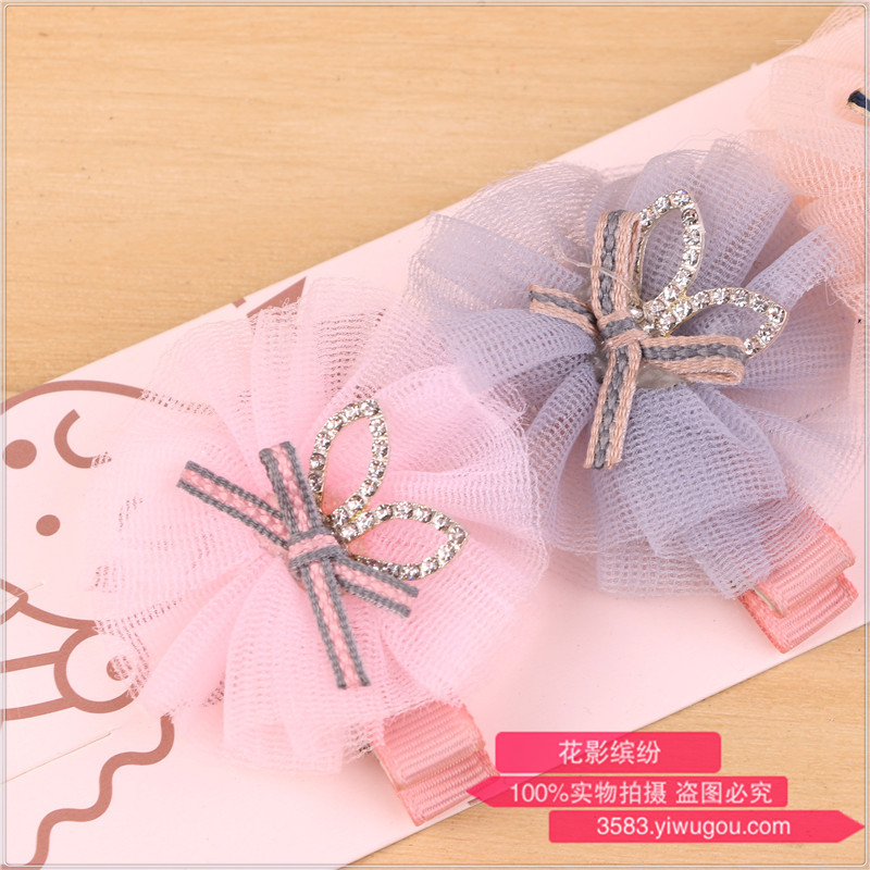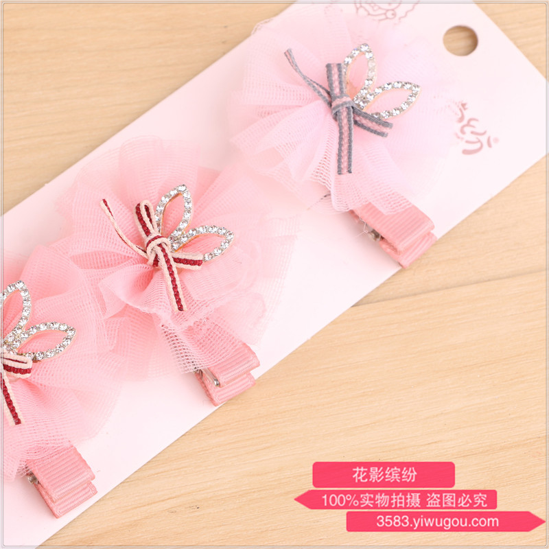 韩国进口儿童发卡发饰韩版宝宝儿童公主蝴蝶结蕾丝水晶礼服发卡 投诉