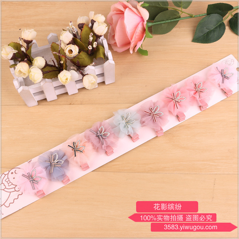 韩国进口儿童发卡发饰韩版宝宝儿童公主蝴蝶结蕾丝水晶礼服发卡