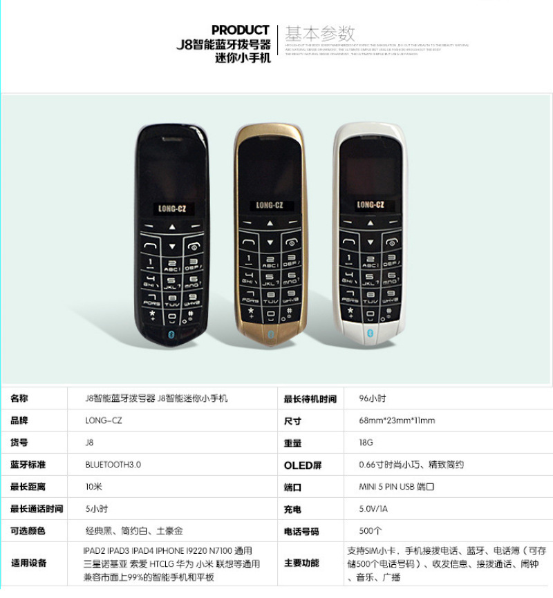 J8蓝牙手机 迷你便捷式外文小手机
