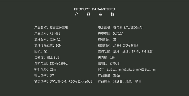 REMAX RB-M31 复古蓝牙音箱