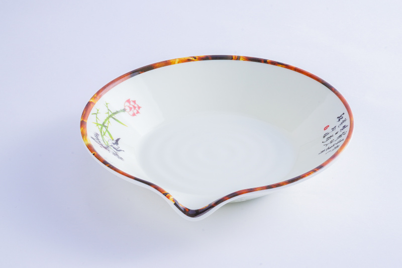 • 美耐皿(100%密胺):其原料为纸浆加入多种化学原料和树脂研制而成,经过高温模具热塑制成,具有陶磁亮丽之外观,建议选用100%密胺产品;耐磕碰、耐高低温,不易摔破,品质好,符合国家食品卫生标准.