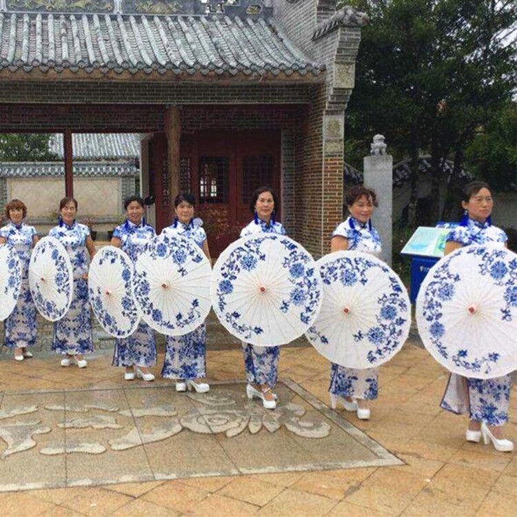 青花瓷油纸伞舞台走秀旗袍美人雨伞江南工艺伞中国风摄影舞蹈伞