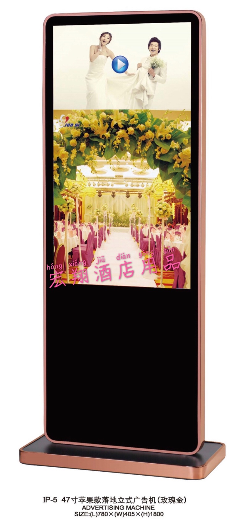 广告机47寸苹果款落地立式玫瑰金宏翔广告机