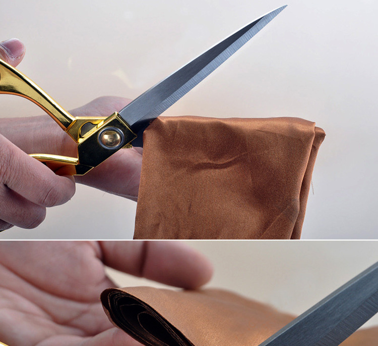 本剪刀能顺利剪切五层绸布,不带丝