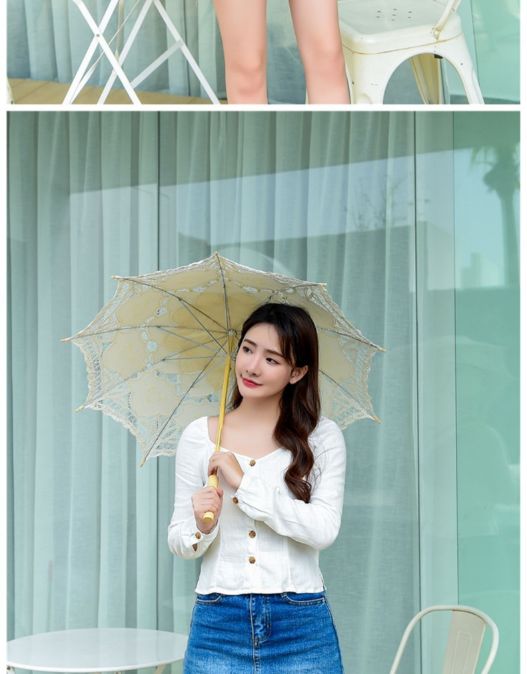 紫轩工艺洋伞女婚庆结婚新娘伞大红伞复古风蕾丝宫廷工艺伞拍照长柄伞