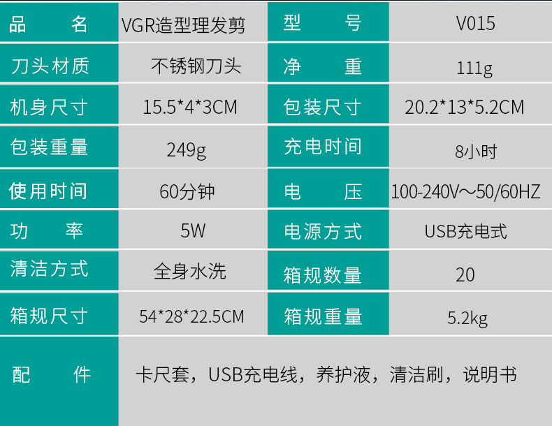 VGR V-015电动理发剪 理发电推子 外贸理发器自动研磨刀头 投诉
