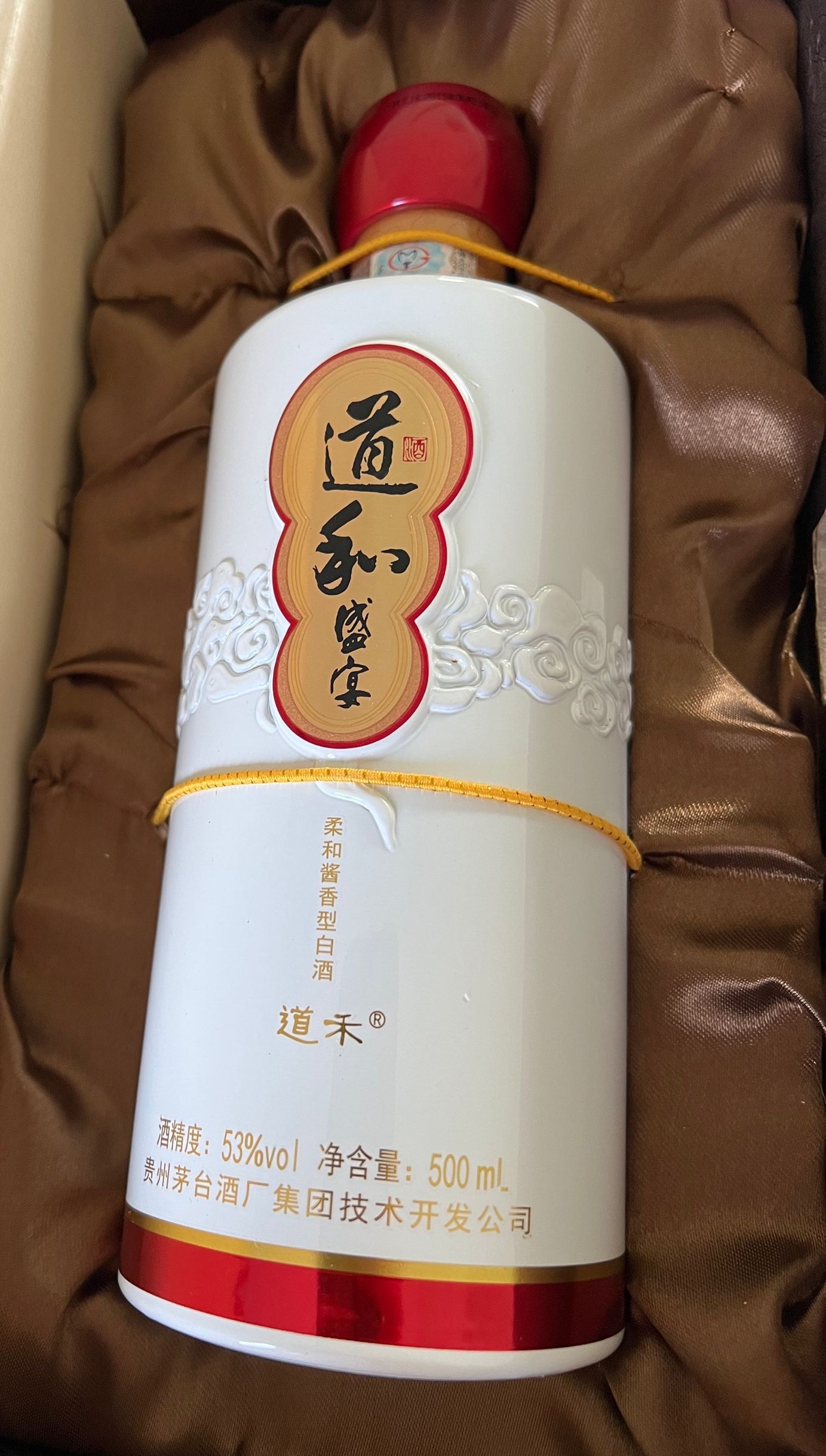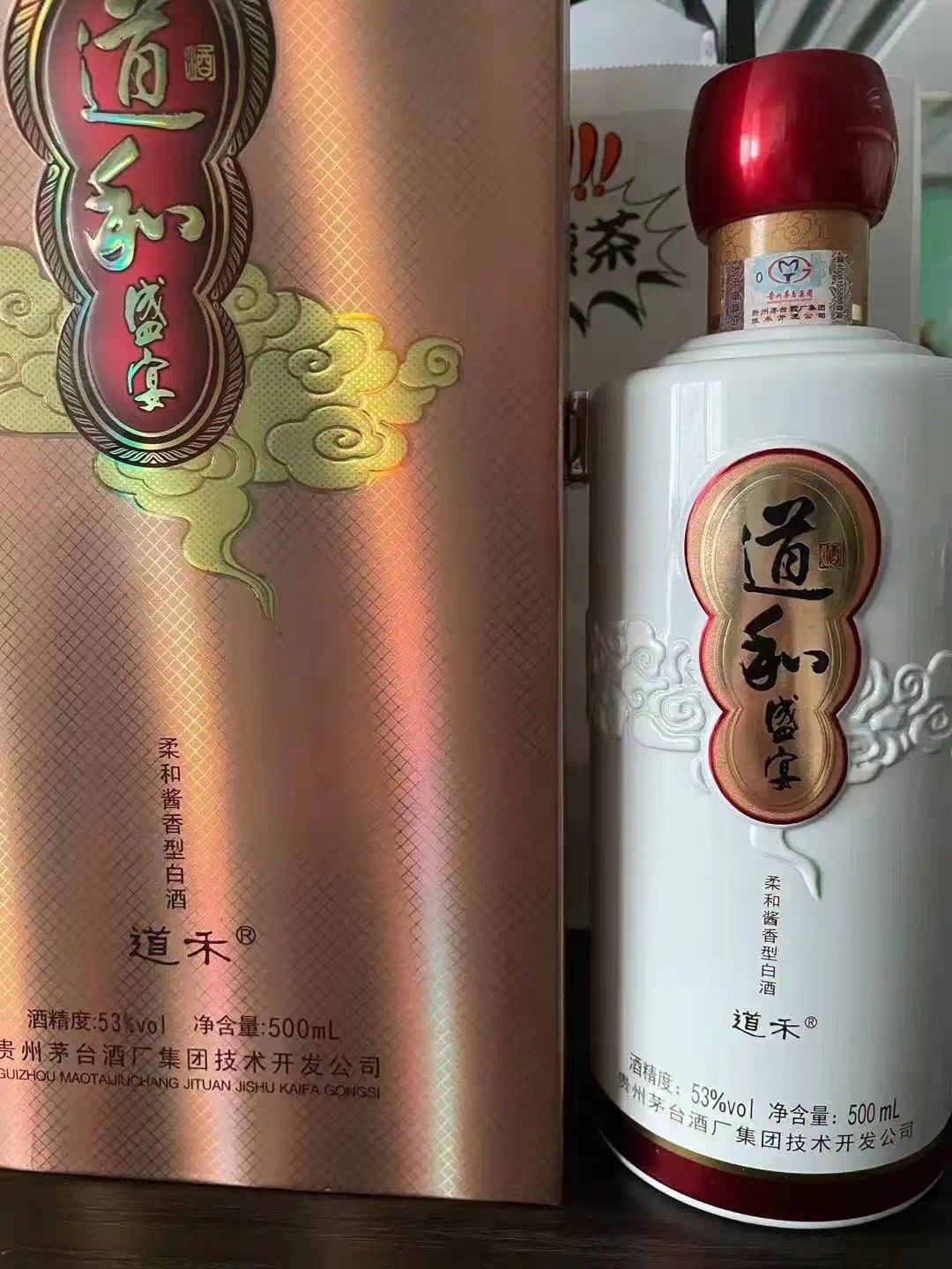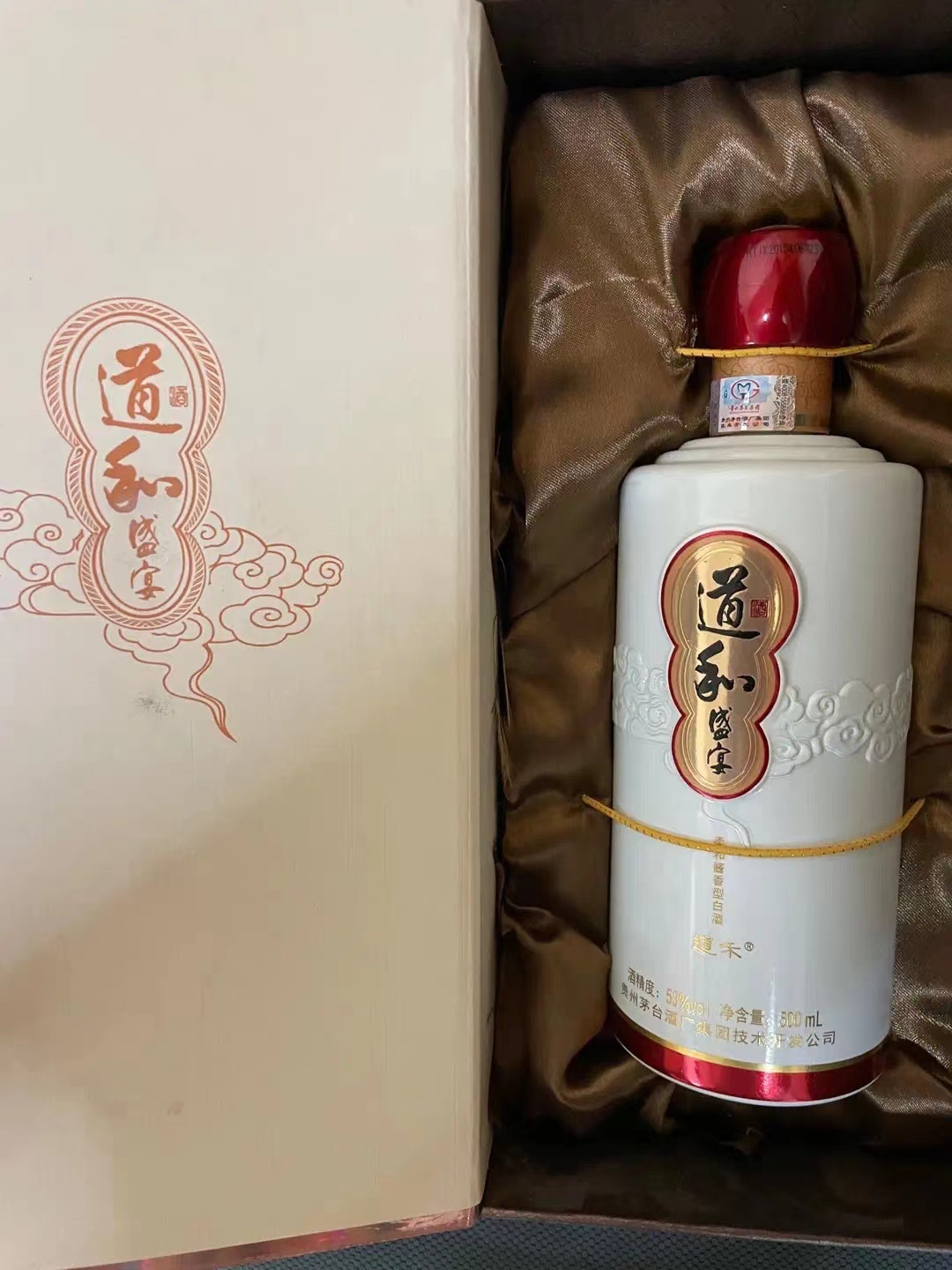 2015年份贵州商务道和盛宴53度白酒酱香型白酒道禾盛宴酒500ML,香型:柔和酱香型酒精度:53%vol净含量:500ml原料:高粱、小麦、需要联系18857917188,请确认,请安排。