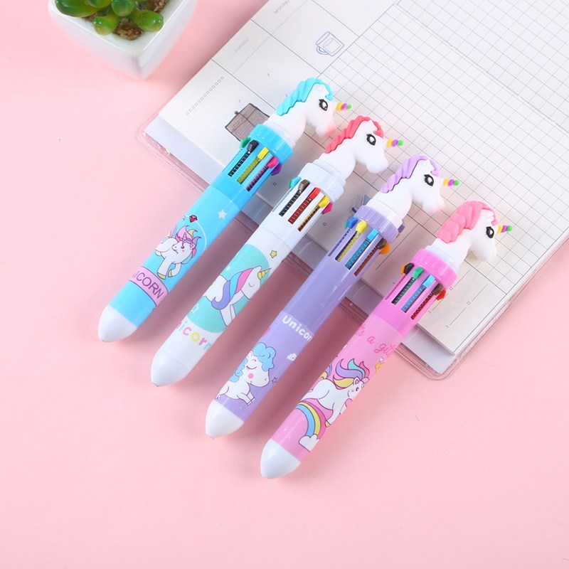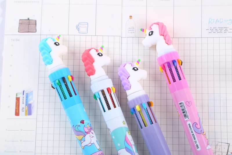 独角兽卡通圆珠笔 独角兽硅胶头10色卡通圆珠笔 韩版多色圆珠笔