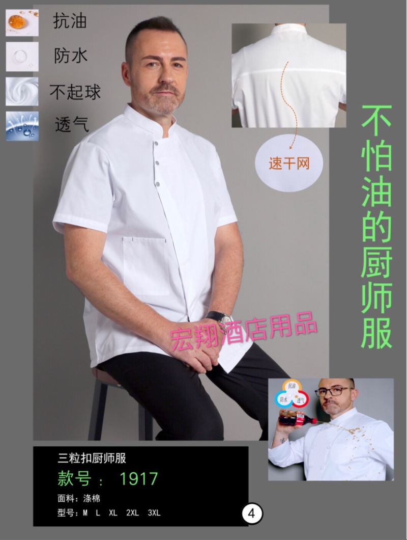短袖厨师服防水防油不起球透气餐厅饭店酒店厨师服 投诉
