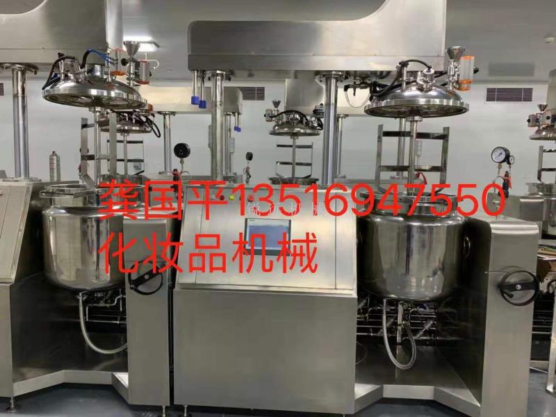 真空均质乳化剂,适用于生产高档膏霜、乳液、粉底、睫毛膏等产品,还有食品、工业用品、药品等生产。进口均质,高配置,可以按照要求定制。规格大小很多,可以按照客户要求定制。
