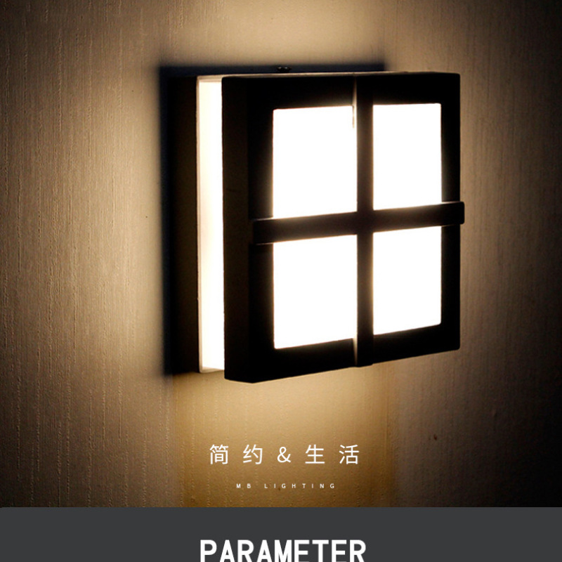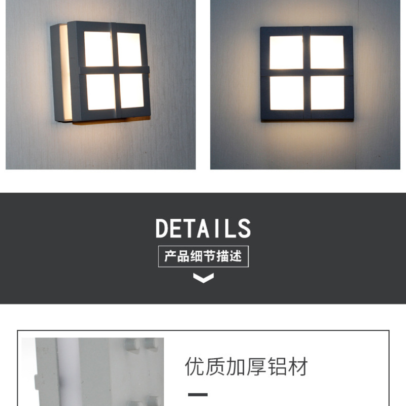 户外壁灯 防水现代室外阳台过道防潮灯车库院子灯LED铝材庭院壁灯