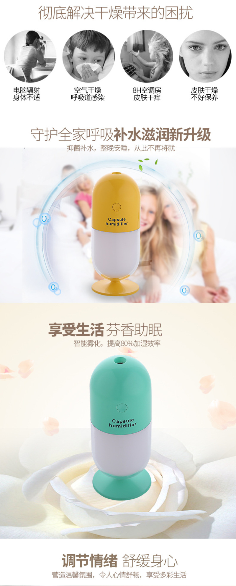 胶囊加湿器 家用加湿器 补水喷雾 USB加湿器 迷你加湿器 桌面加湿 投诉