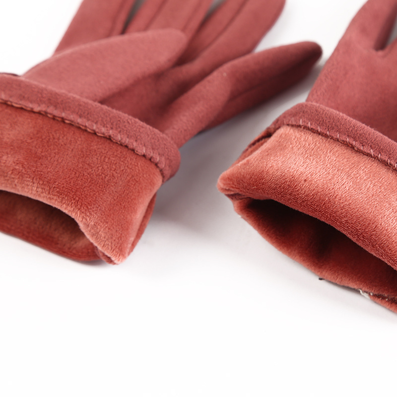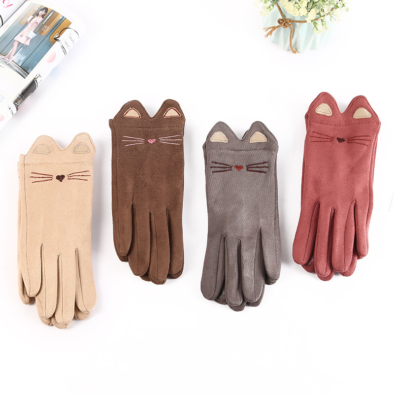 秋冬季可爱女式开车分指手套 麂皮绒猫咪保暖防寒五指纯色手套 English | 投诉