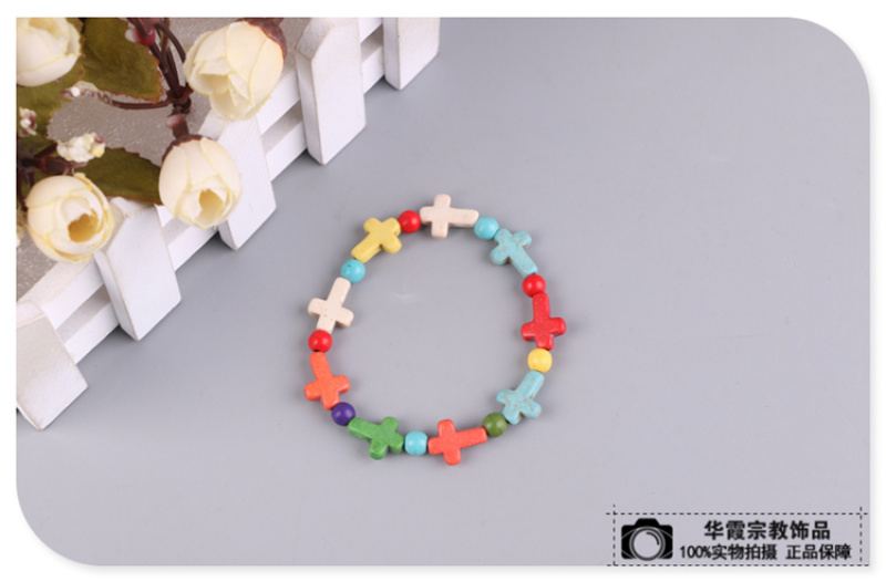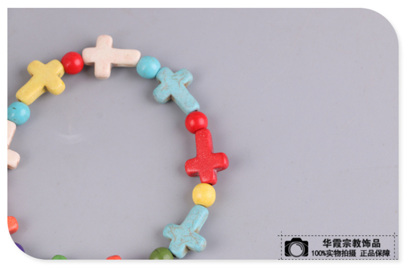 商品名称:七彩十字架造型混色手链 时尚欧美风格手链 宗教信仰DIY配饰