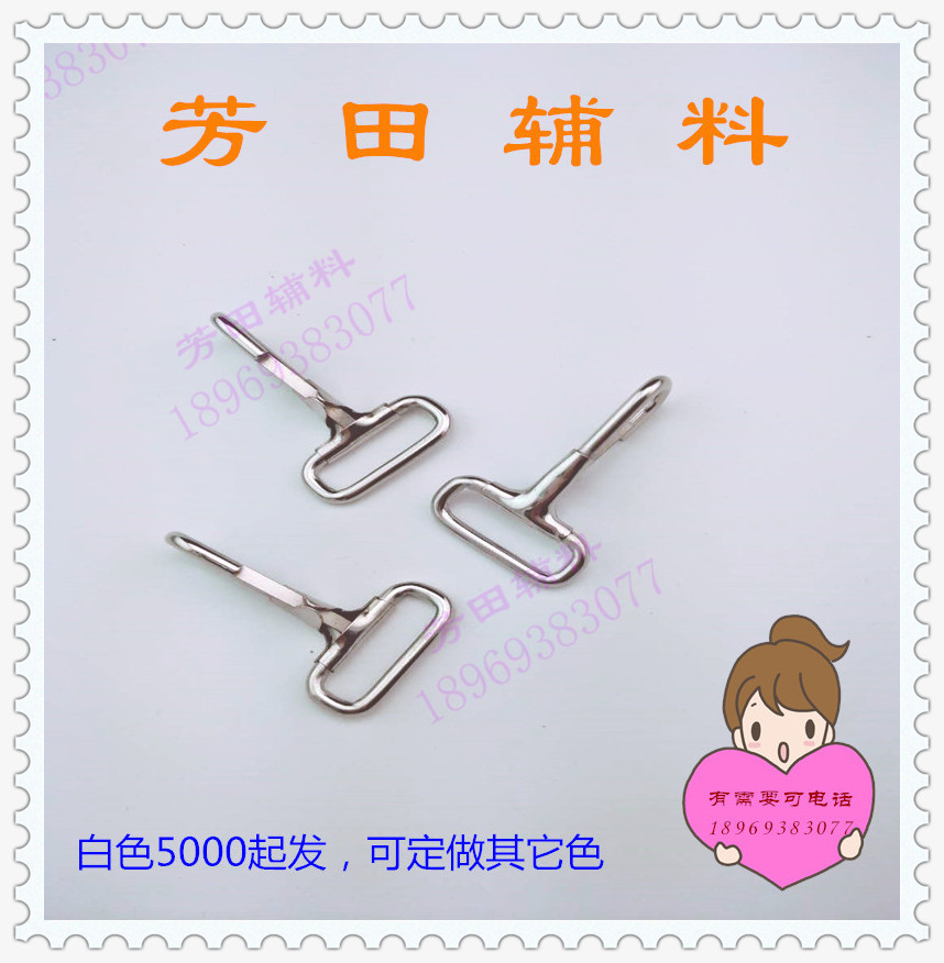 【产品型号】:铁钩扣白色内径20mm 【产品尺寸】:内径20mm 【产品材质】:铁制品 【产品颜色】:白色 枪黑 |