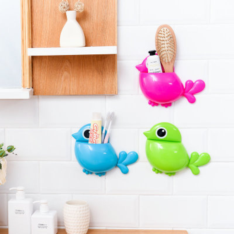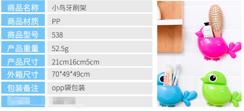 批发可爱创意小鸟强力吸盘牙刷架洗漱收纳盒 小鸟牙刷盒牙刷座纸 投诉
